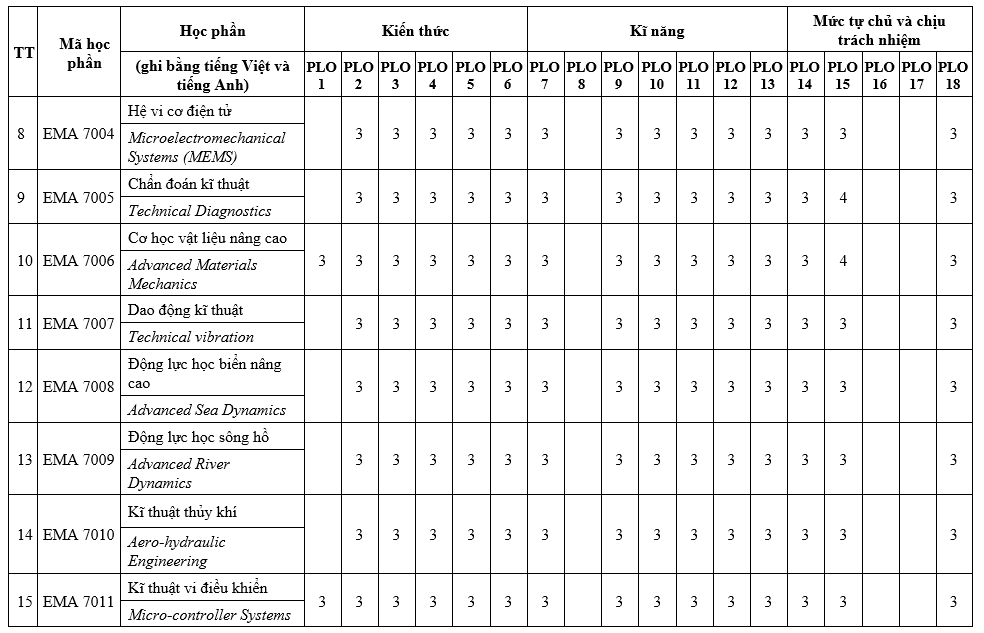 PLO13: Vận dụng kỹ năng cập nhật các công nghệ, kiến thức mới chuyên ngành cơ kĩ thuật và nhận thức về vai trò của học tập suốt đời;