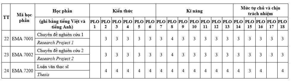 PLO6: Nắm vững kiến thức liên quan đến đề tài nghiên cứu;