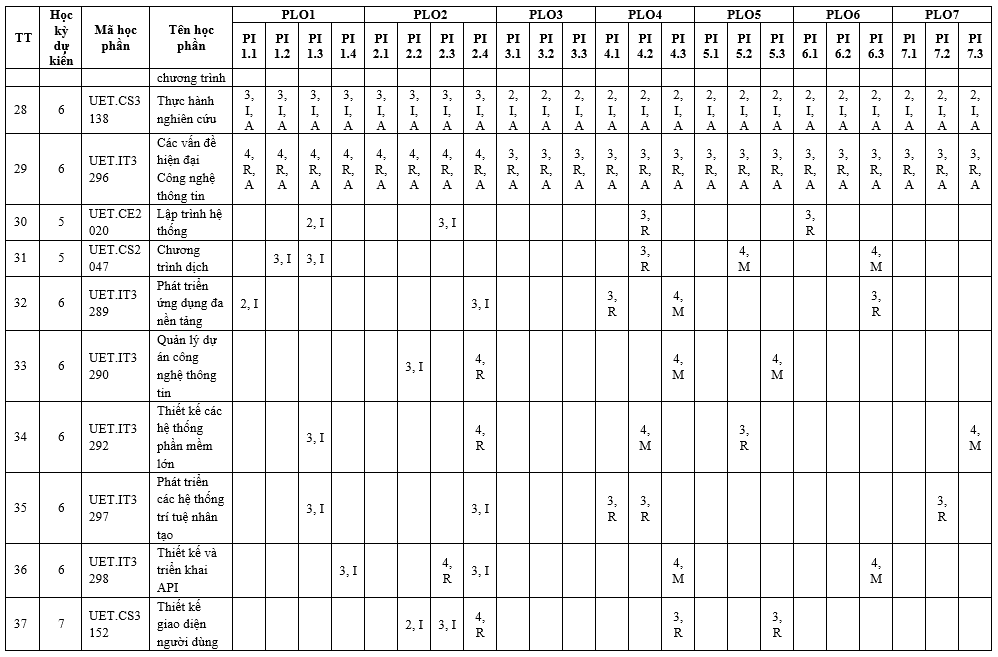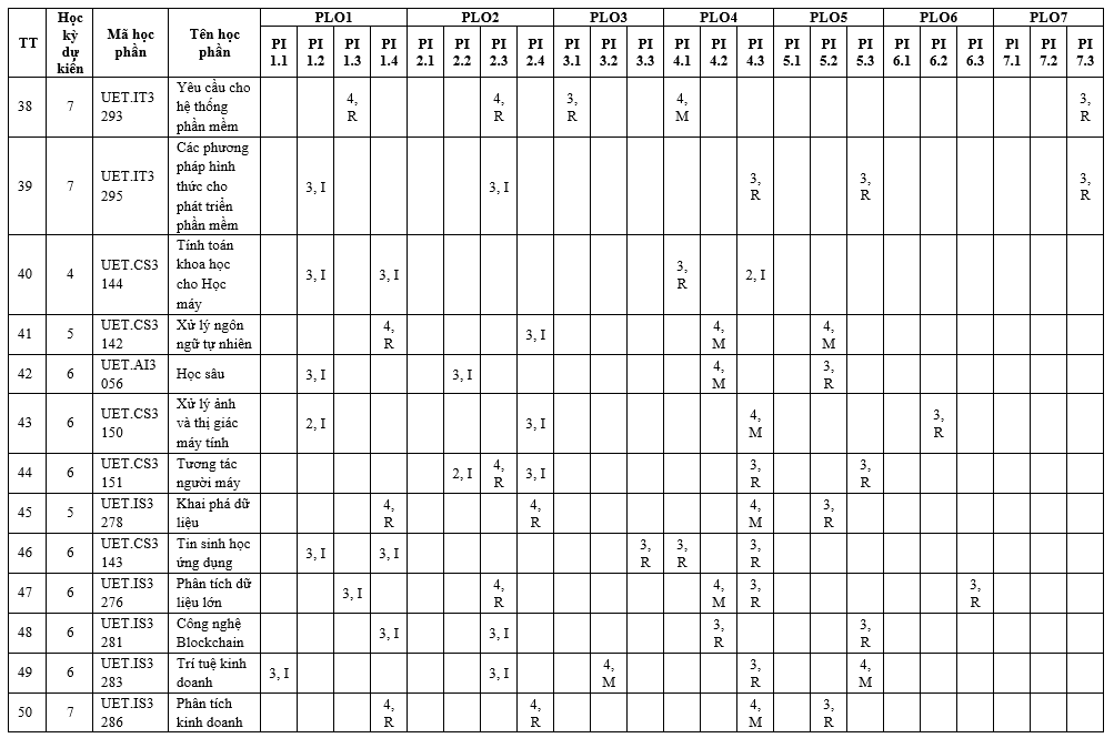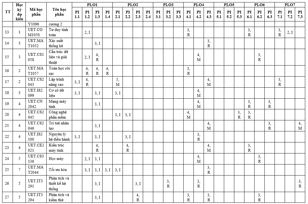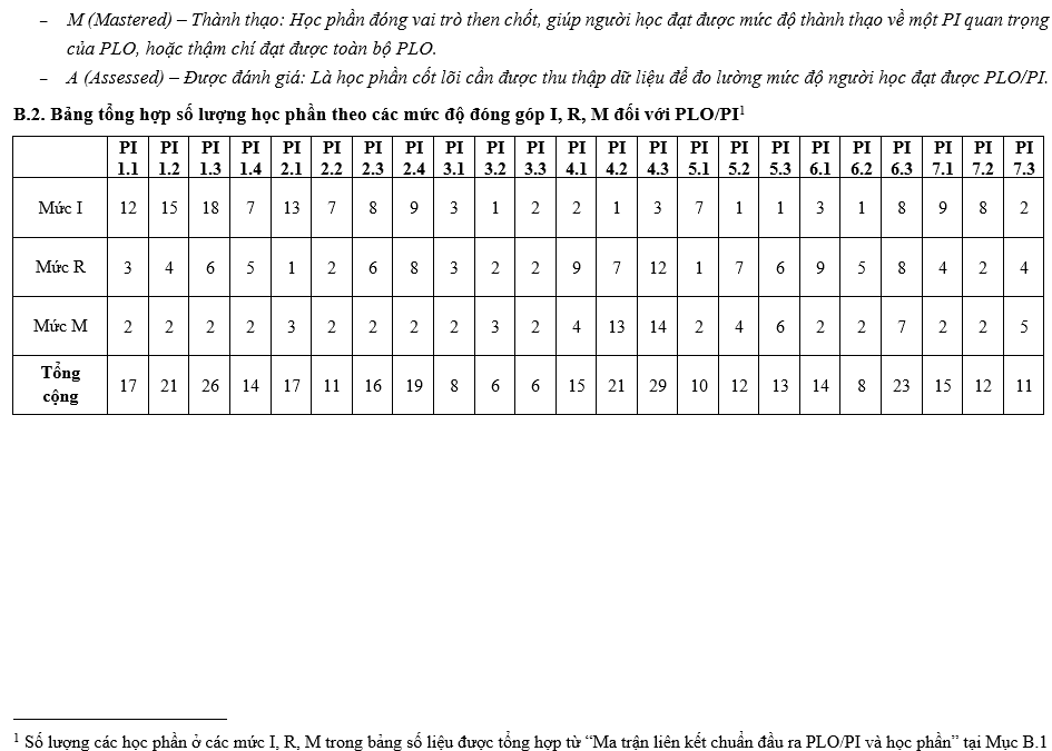 B.1. Ma trận liên kết chuẩn đầu ra PLO/PI và học phần