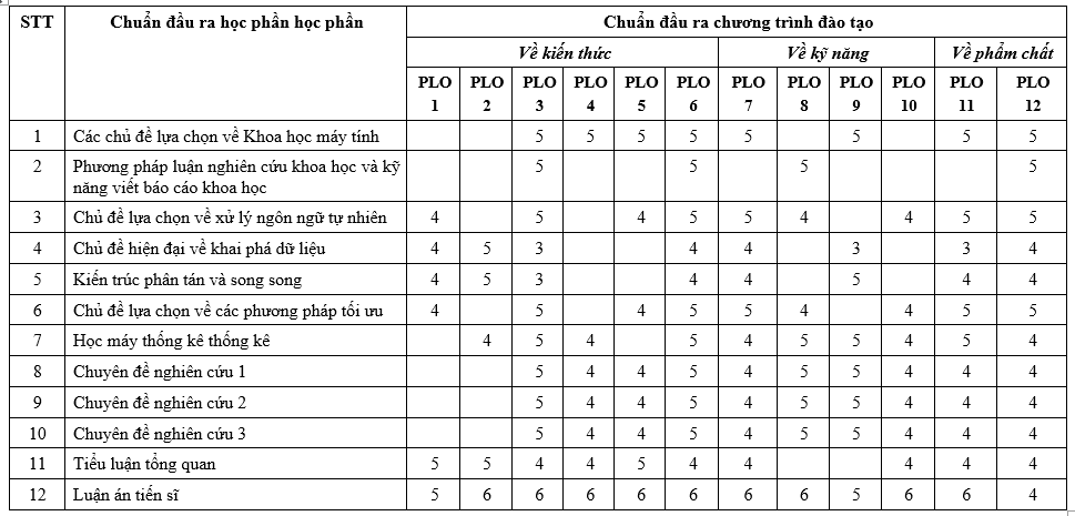 PLO3. Phân tích và luận giải các kiến thức chuyên sâu, liên ngành trong lĩnh vực khoa học máy tính nhằm nâng cao năng lực khoa học cho nghiên cứu sinh.