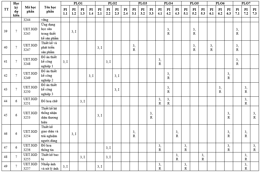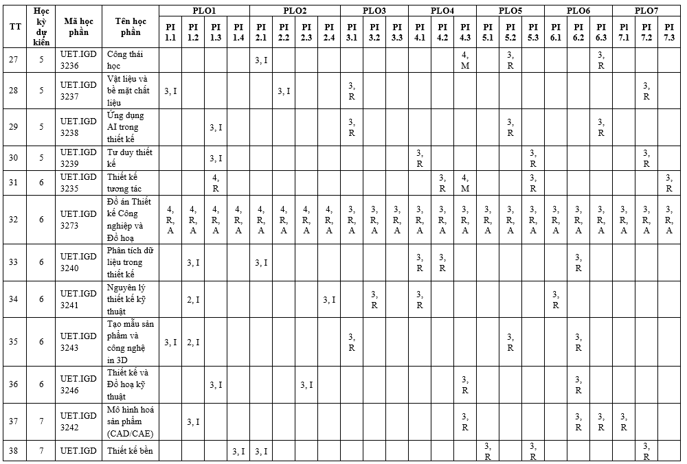 Chương trình đào tạo ngành Thiết kế công nghiệp và đồ họa