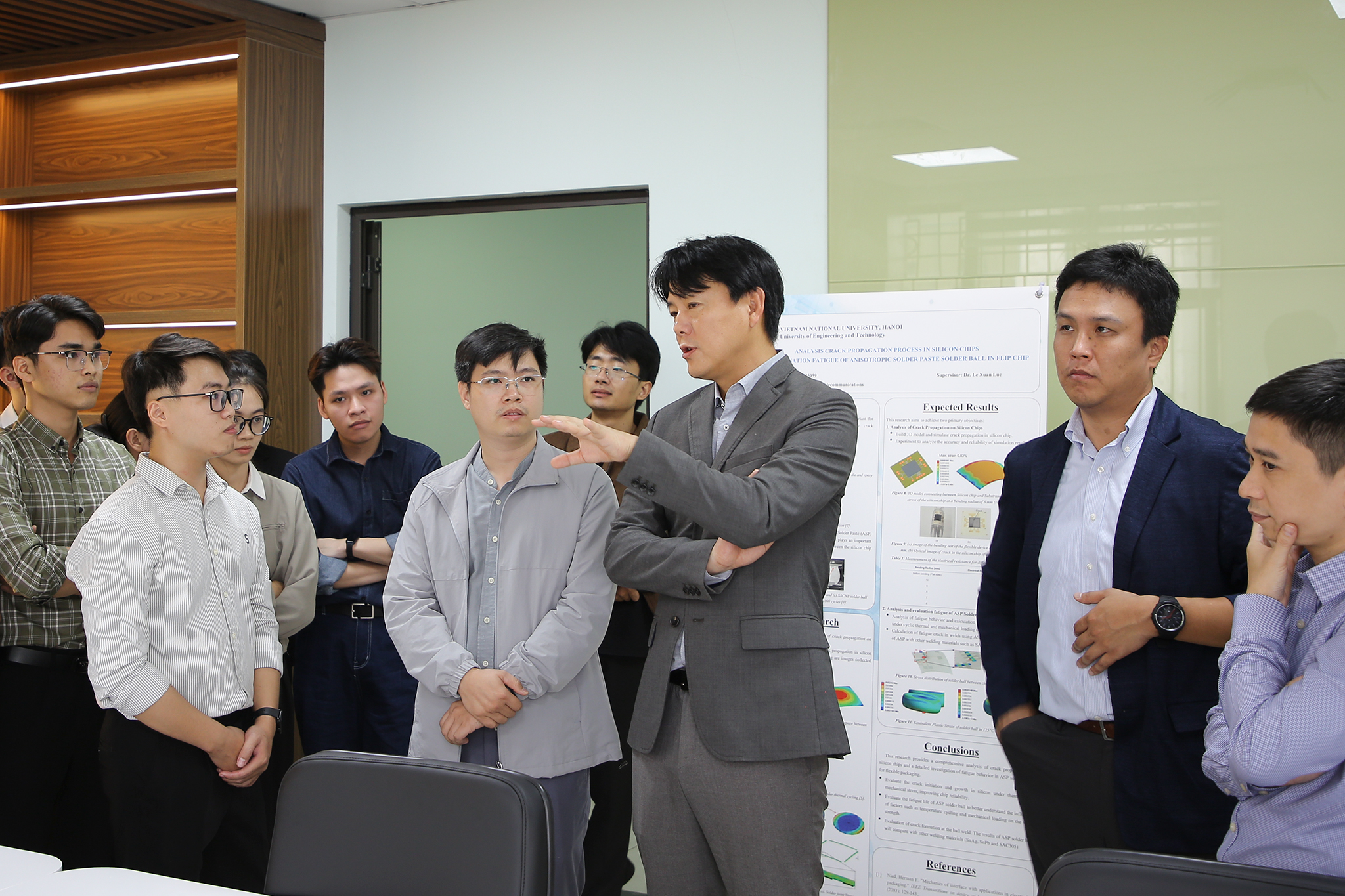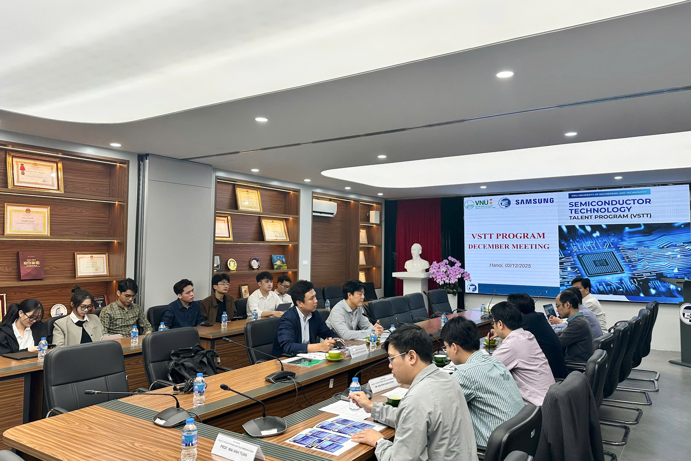 Ngày 02/12/2024, Trường Đại học Công nghệ – Đại học Quốc gia Hà Nội (VNU-UET) đã có buổi tiếp đại diện Công ty Samsung Electronics, Hàn Quốc, nhằm đánh giá quá trình đào tạo đối với chương trình hợp tác phát triển nguồn nhân lực chất lượng cao trình độ Thạc sĩ trong lĩnh vực bán dẫn và vi mạch. Chương trình VNU-Samsung Tech Track (V-STT) được triển khai từ ngày 31/01/2024 sau lễ ký kết hợp tác giữa Trường ĐH Công nghệ và Công ty Samsung Điện tử, Hàn Quốc (Samsung Electronics).