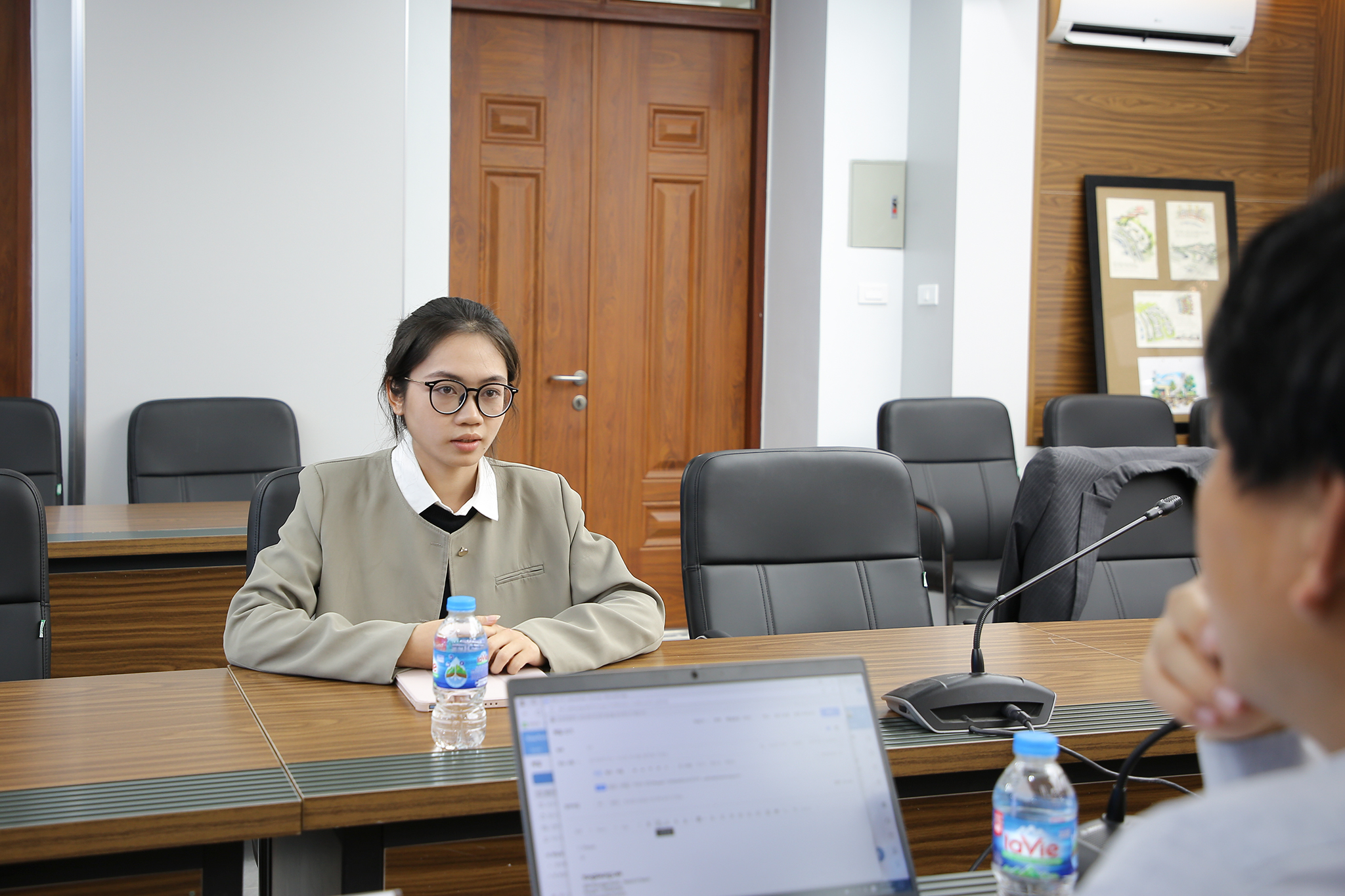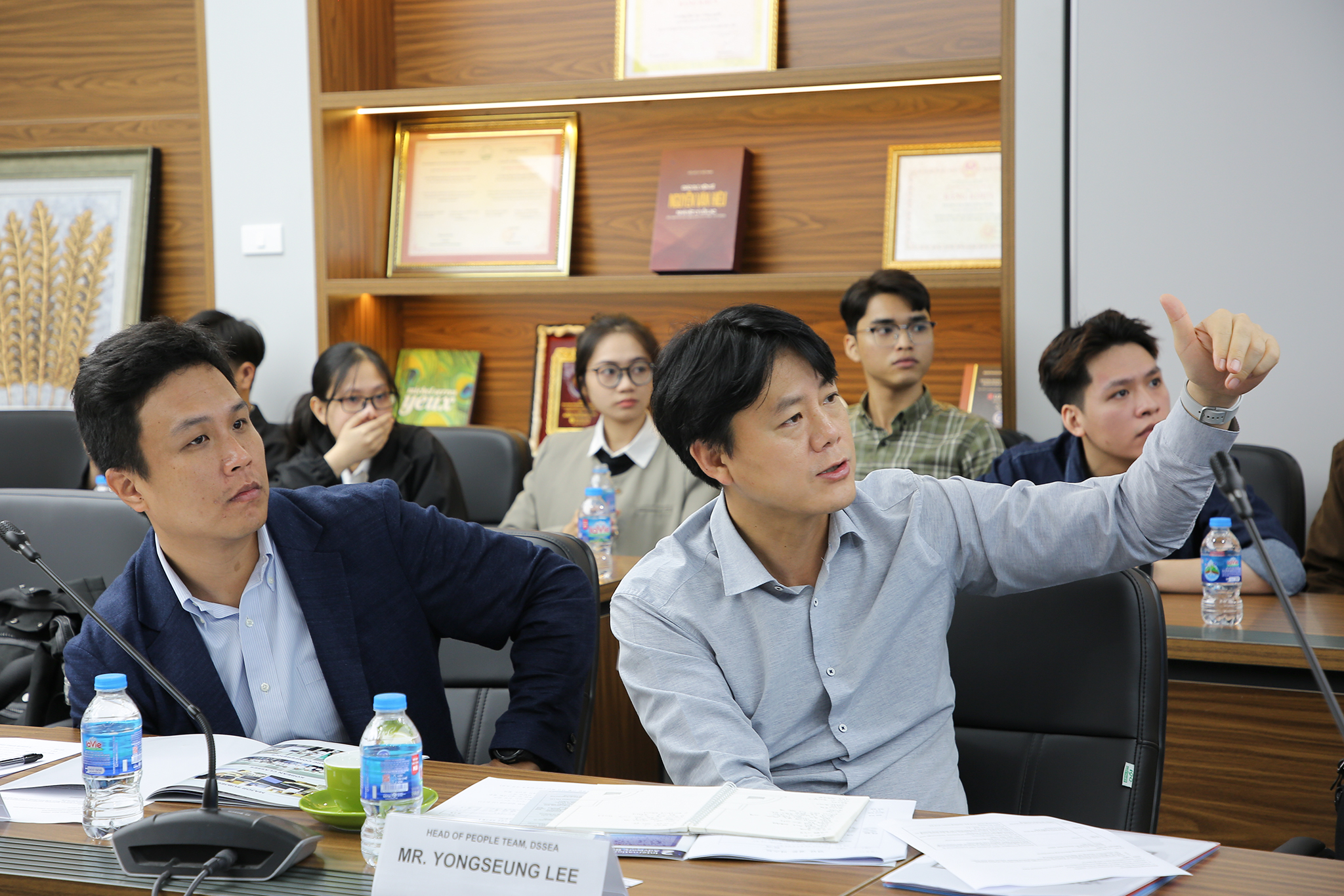Ông Yongseung Lee, Trưởng bộ phận nhân sự, Samsung Electronic phụ trách khu vực Đông Nam Á (bên phải) và Ông Wooyoung Noh, Bộ phận tuyển dụng quốc tế của Samsung Electronic phụ trách khu vực Đông Nam Á (bên trái) trao đổi tại buổi làm việc