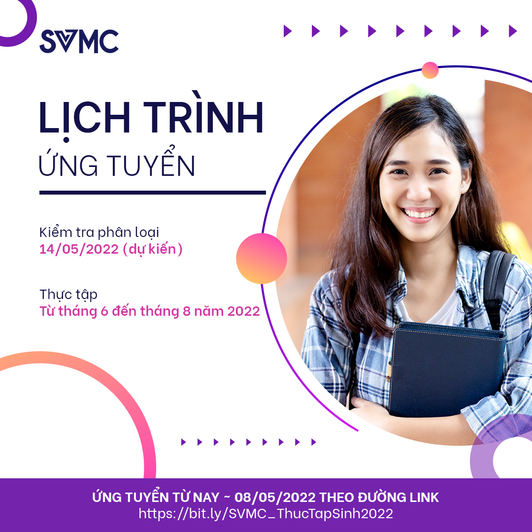 - Từ 01/04 – 08/05/2022: Ứng tuyển theo đường link: https://bit.ly/SVMC_ThucTapSinh2022.