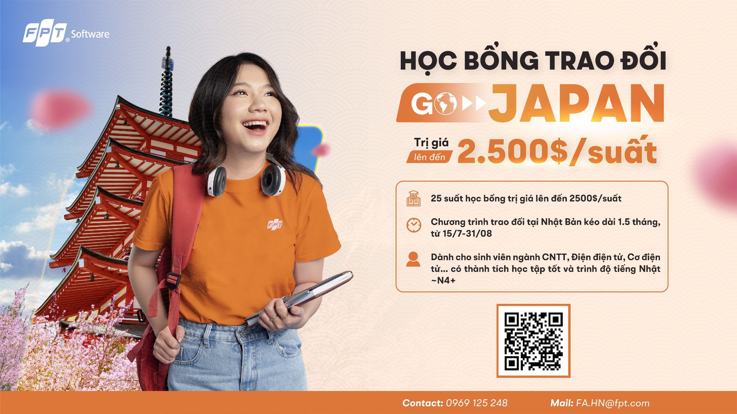 Nhà trường nhận được thông báo số 141/2024/FSOFT của công ty TNHH phần mềm FPT (sau đây gọi tắt là FPT) về việc triển khai chương trình học bổng Go Japan dành cho sinh viên các khối ngành kỹ thuật năm 2024.