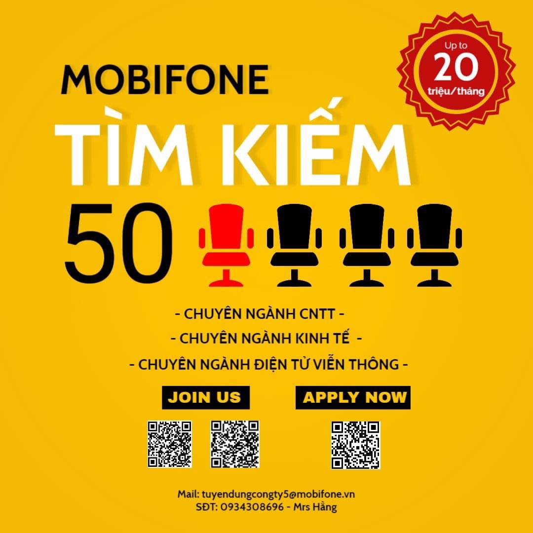 MOBIFONE tìm kiếm 50 nhân sự xuất sắc các ngành IT, Điện tử viễn thông, Kinh tế cho mục tiêu CHUYỂN ĐỔI SỐ, làm việc tại Hải Phòng và các tỉnh Đông Bắc Bộ với mức lương hấp dẫn, đãi ngộ ấn tượng: