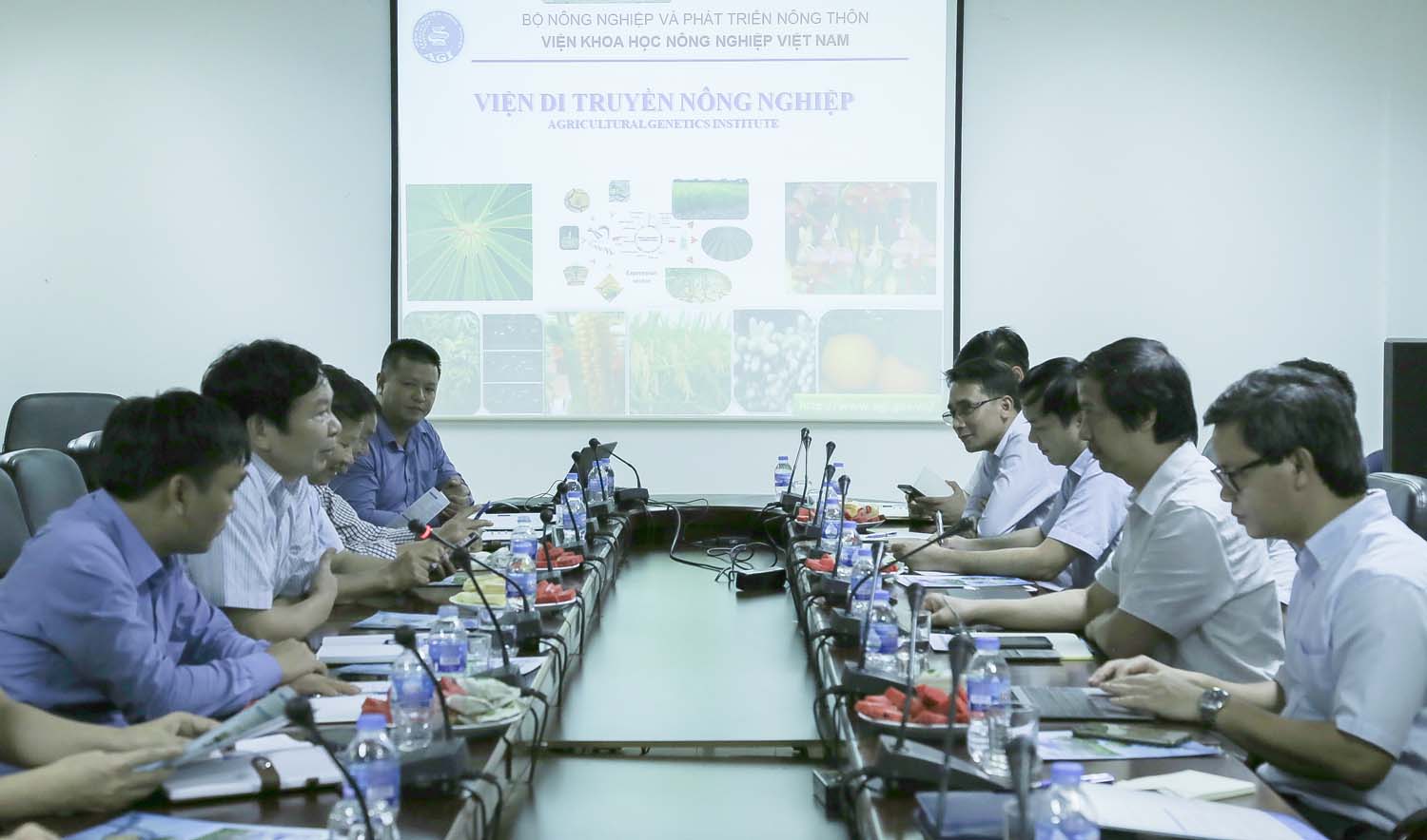 Tiếp và làm việc với Đoàn có Viện trưởng Viện Di truyền Nông nghiệp Phạm Xuân Hội cùng đại diện cán bộ chủ chốt của Viện.
