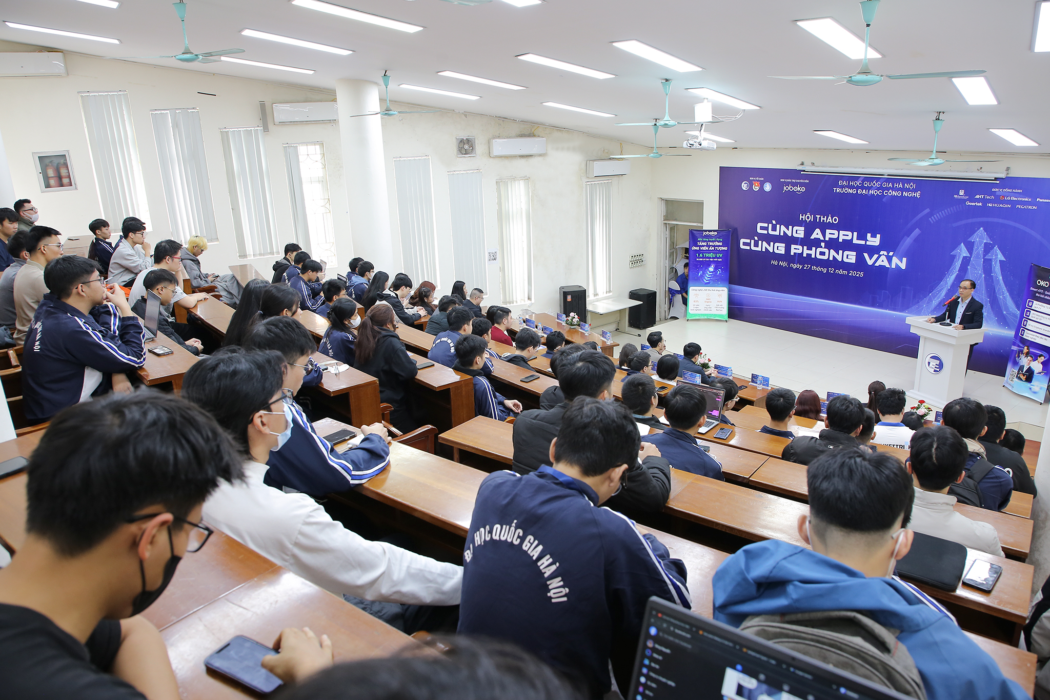 Hội thảo “Cùng apply – Cùng phỏng vấn” diễn ra ngày 27/12/2025 tại Trường Đại học Công nghệ – Đại học Quốc gia Hà Nội (VNU-UET) là một trong các hoạt động thiết thực và ý nghĩa đối với sinh viên UET. Hội thảo đã giúp sinh viên thêm tự tin, tỏa sáng, để chinh phục được vị trí việc làm mơ ước.
