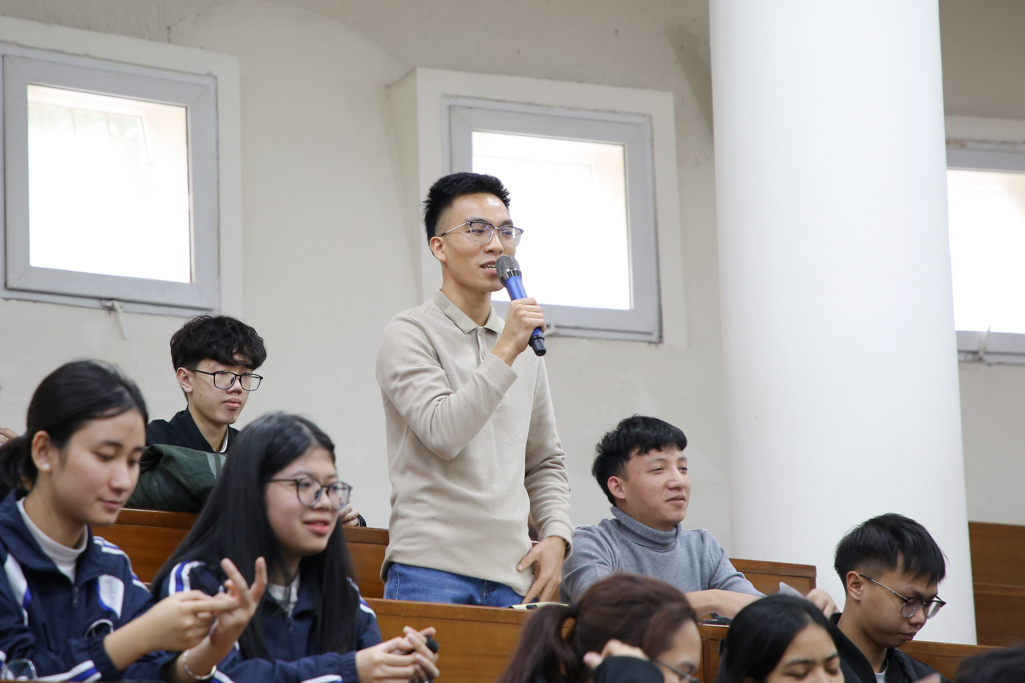 Tại hội thảo, sinh viên đã lắng nghe phần trình bày của diễn giả Nguyễn Hải Long – Giám đốc Trung tâm AI AHT Tech. Với kinh nghiệm chuyên sâu trong các lĩnh vực như AI Agent, Prompt Engineering, Multi-Agent System, Voice AI, Computer Vision và quá trình triển khai AI trong nhiều lĩnh vực thực tiễn, diễn giả đã mang đến những góc nhìn rõ ràng, thực tế cùng các định hướng cụ thể cho sinh viên trong bối cảnh AI phát triển mạnh mẽ.