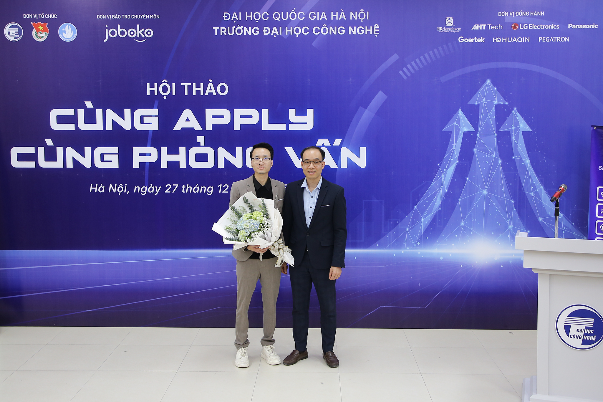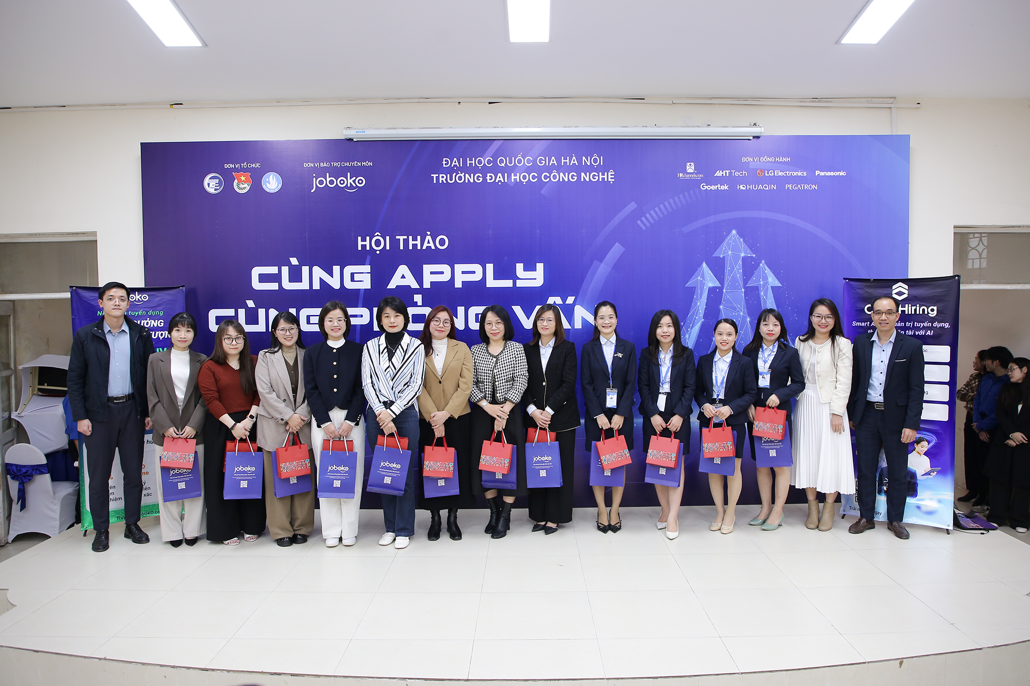 Hội thảo “Cùng apply – Cùng phỏng vấn” diễn ra với các hoạt động chính: Workshop “Sinh viên cần làm gì để không bị thay thế bởi AI” do anh Nguyễn Hải Long – Giám đốc Trung tâm AI AHT Tech; Review CV; Mock Interview và phỏng vấn tuyển dụng trực tiếp với doanh nghiệp. Hoạt động này dưới sự bảo trợ chuyên môn của nền tảng công nghệ tuyển dụng JobOKO, nhằm trang bị kỹ năng viết CV xin việc, phỏng vấn, tìm việc làm dành riêng cho các bạn sinh viên UET.
