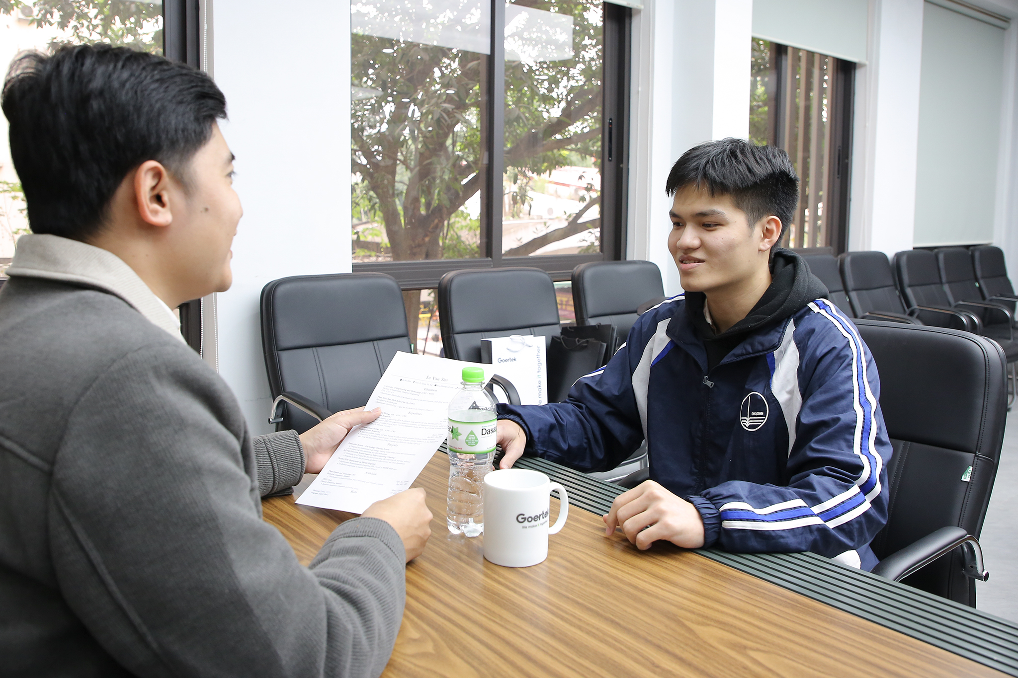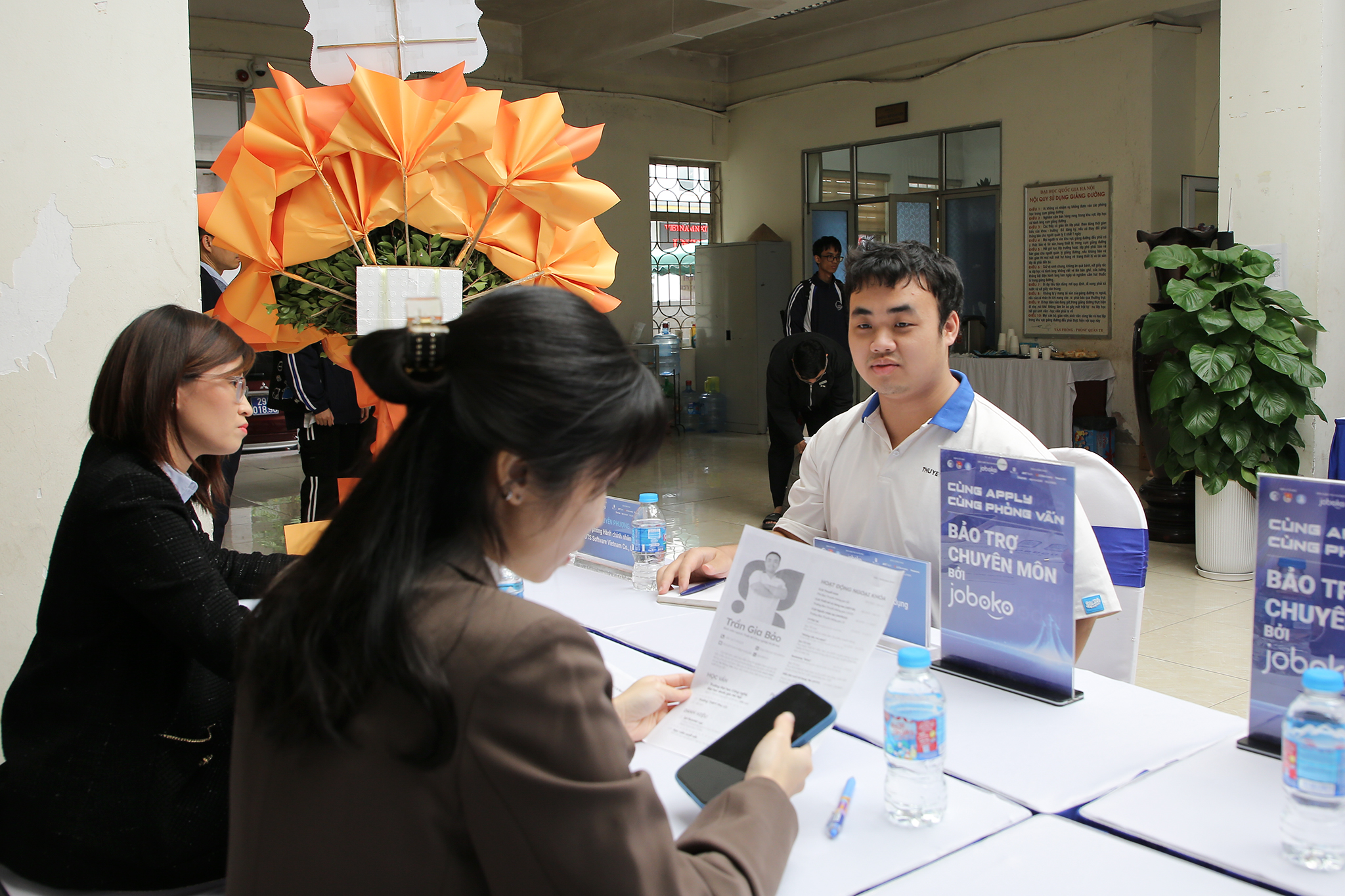 Bên cạnh các hoạt động review CV và mock interview, Lê Văn Tuệ – sinh viên năm tư ngành Kỹ thuật máy tính – đã chủ động tham gia buổi phỏng vấn tuyển dụng thực tế với doanh nghiệp. Với sự tự tin được tích lũy trong quá trình học tập tại UET, Văn Tuệ bước đầu nắm bắt được yêu cầu tuyển dụng cũng như cách doanh nghiệp đánh giá năng lực ứng viên. Dù còn khoảng một năm nữa mới tốt nghiệp, trải nghiệm phỏng vấn đã giúp Văn Tuệ có cái nhìn rõ ràng hơn về con đường chuẩn bị nghề nghiệp phía trước.