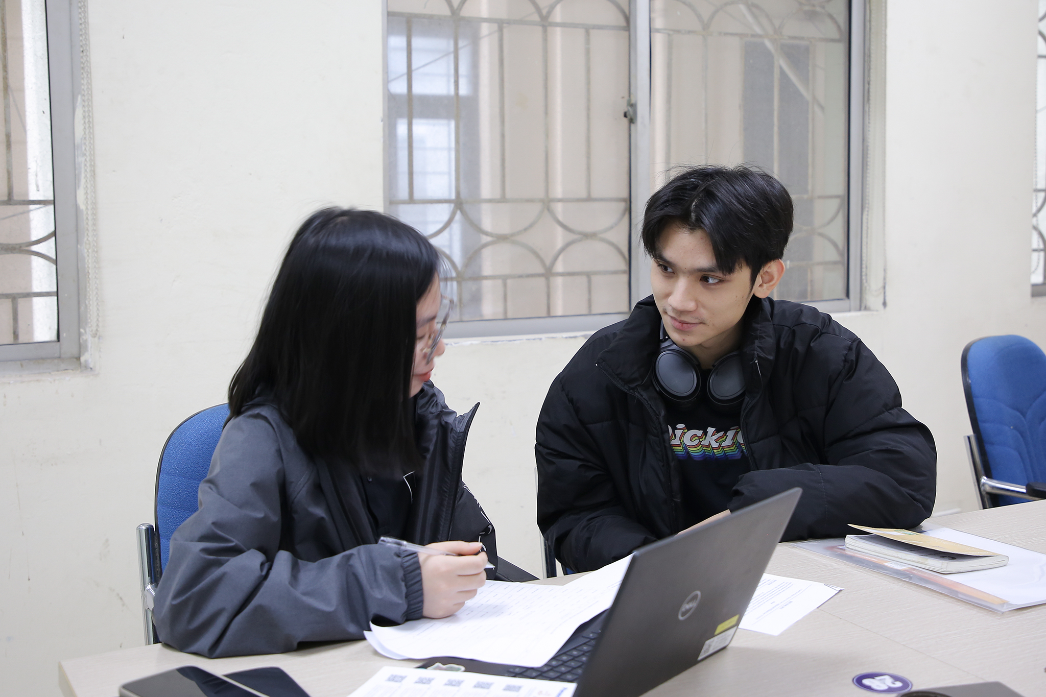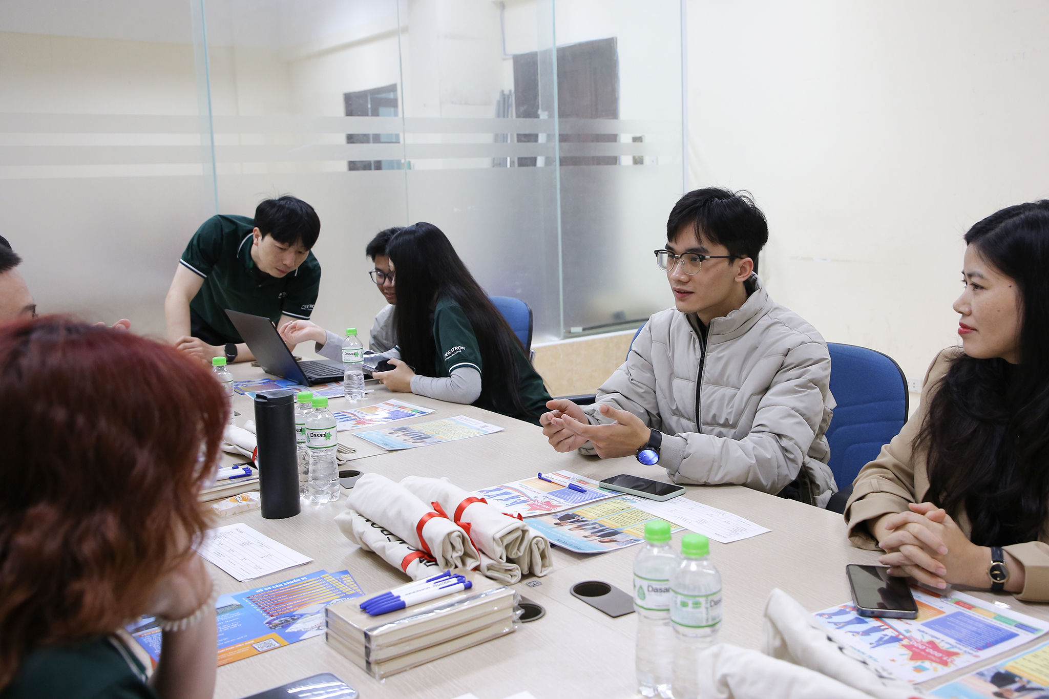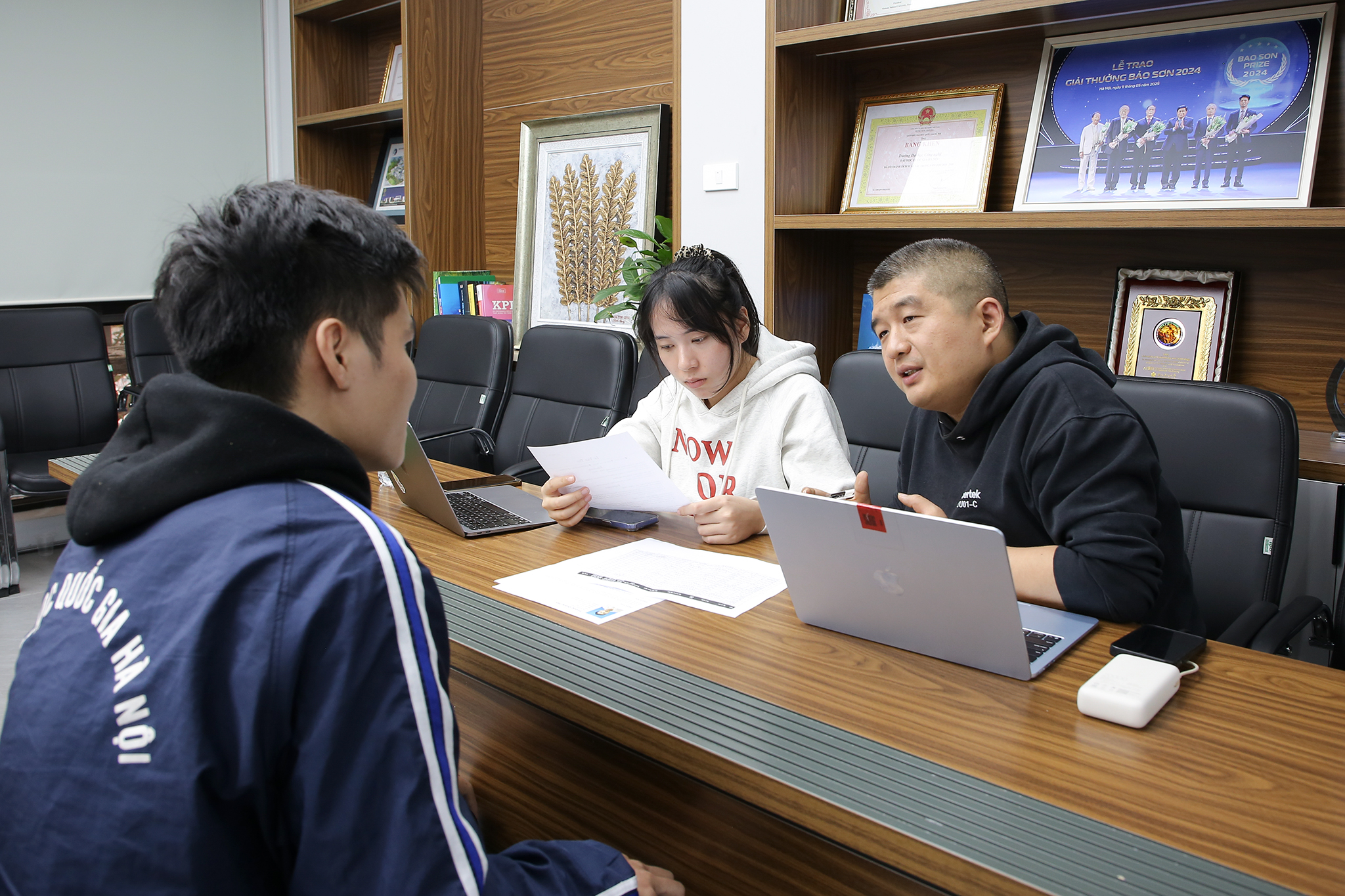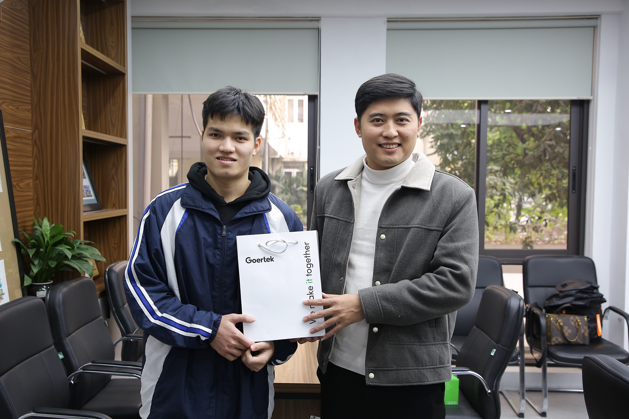 Anh Ngô Văn Chí (bên phải ảnh) – phụ trách công tác kết nối trường học của Goertek Việt Nam