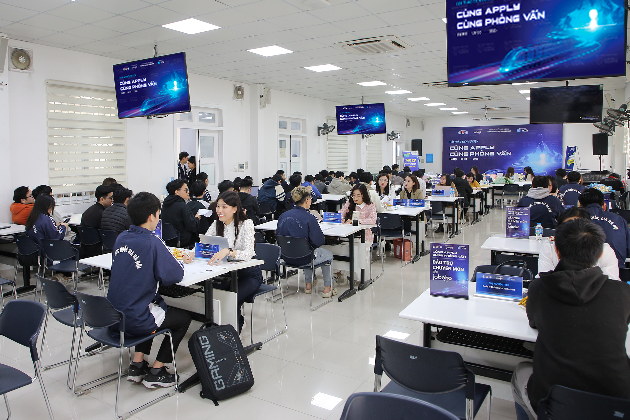 Hội thảo “Cùng apply – Cùng phỏng vấn” diễn ra với 3 hoạt động chính: Review CV, Mock Interview và phỏng vấn tuyển dụng trực tiếp với doanh nghiệp. Đây là hoạt động nằm trong chuỗi sự kiện UET Job Fair 2025, dưới sự bảo trợ chuyên môn của nền tảng công nghệ tuyển dụng JobOKO, nhằm trang bị kỹ năng viết CV xin việc, phỏng vấn, tìm việc làm dành riêng cho các bạn sinh viên UET.