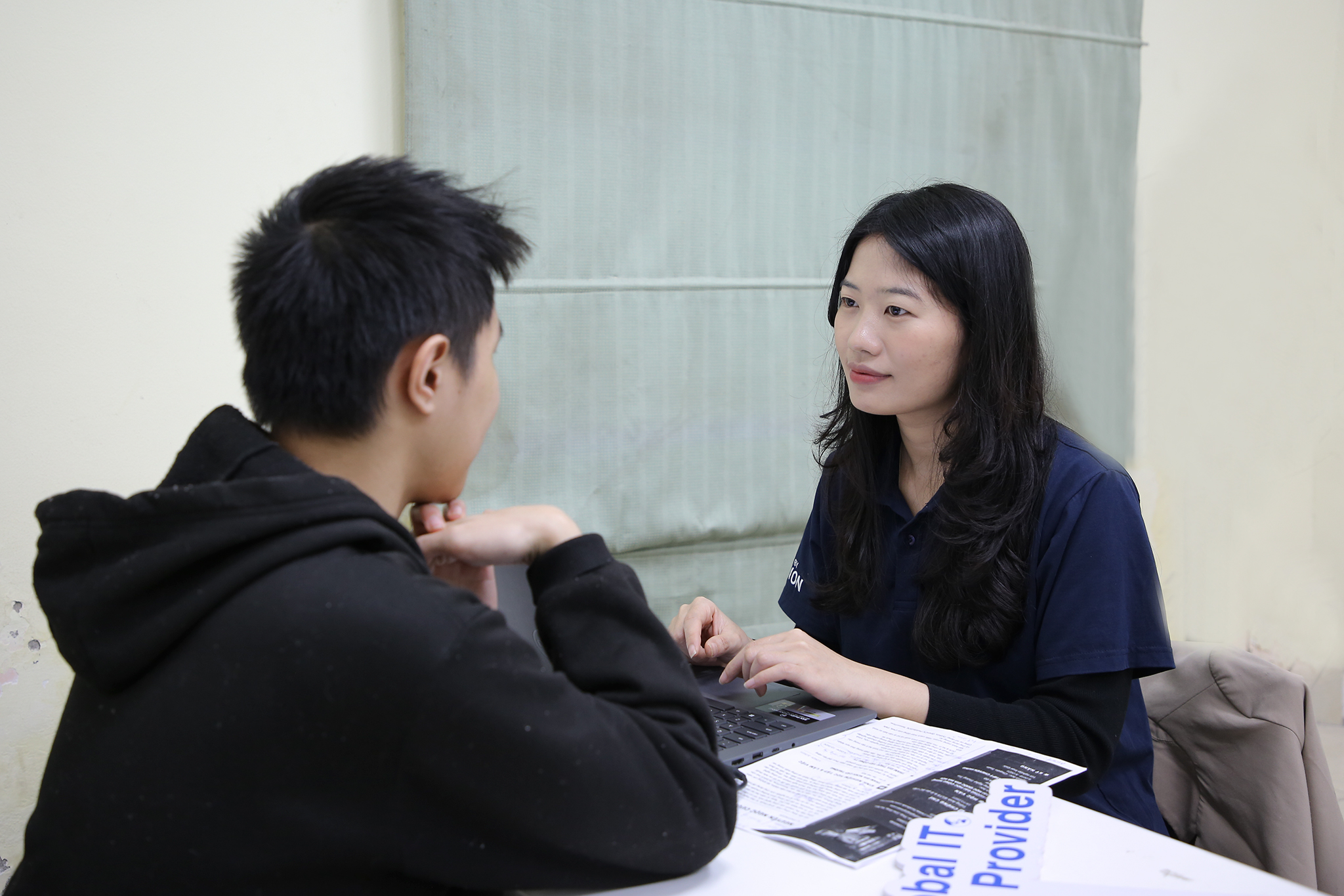 Bên cạnh việc trải nghiệm các hoạt động review CV và mock interview, Nguyễn Ngọc Hưng, sinh viên năm ba ngành Khoa học Máy tính, đã mạnh dạn tham gia phỏng vấn tuyển dụng thực tế với HRchannels Group. Ban đầu, Ngọc Hưng tham gia chương trình với mong muốn cải thiện kỹ năng giao tiếp, kỹ năng phỏng vấn và kỹ năng viết CV, đồng thời ứng tuyển vào vị trí thực tập sinh về AI. Tuy nhiên, giá trị nhận được từ buổi phỏng vấn còn vượt xa mong đợi của bản thân. Ngọc Hưng không chỉ học hỏi được cách viết CV gây ấn tượng với nhà tuyển dụng, mà còn hiểu rõ tầm quan trọng của việc làm nổi bật thế mạnh về kiến thức và kỹ năng chuyên môn, cũng như thể hiện sự phù hợp với vị trí ứng tuyển.