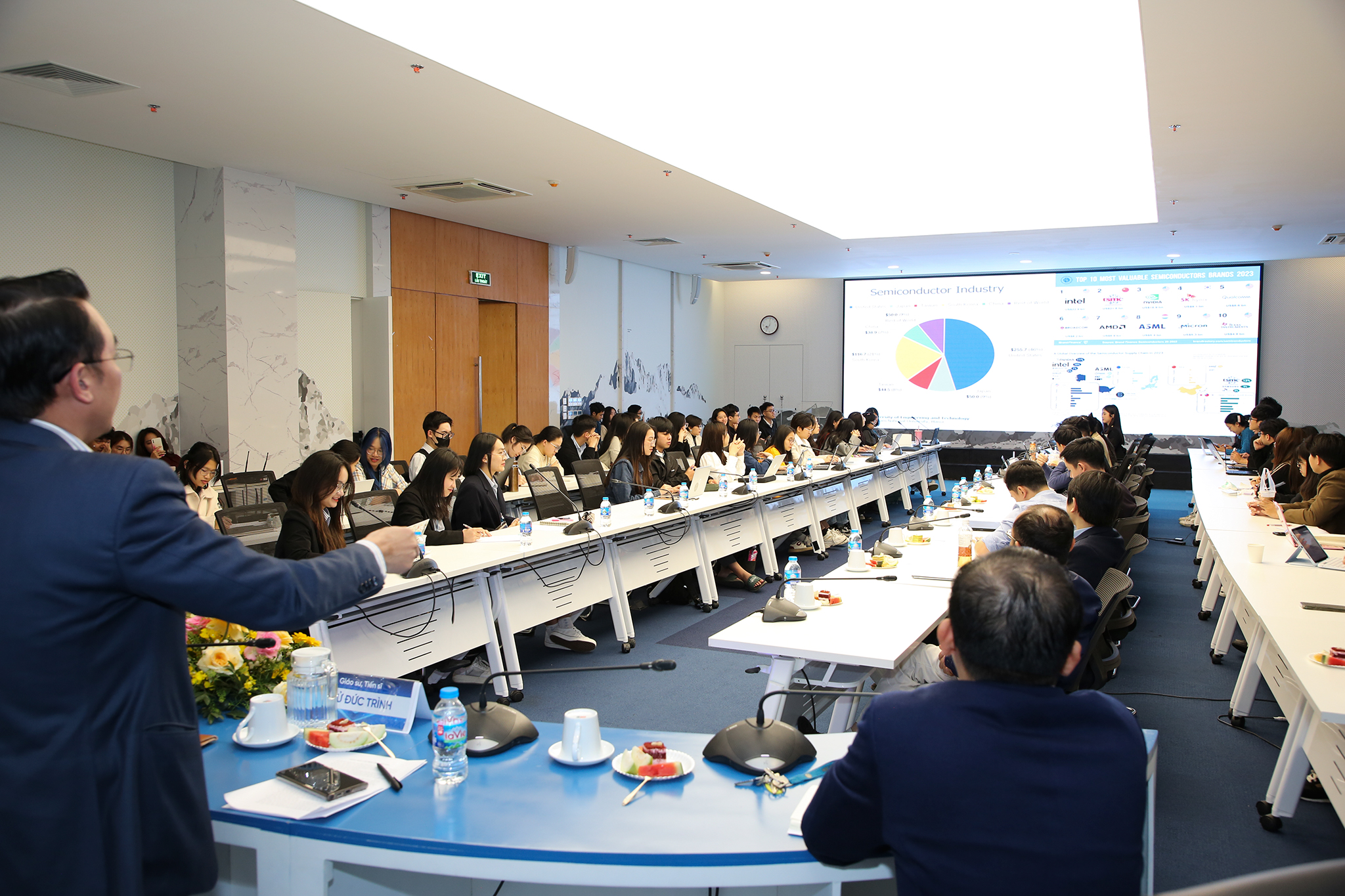 Những câu hỏi thú vị của sinh viên về lĩnh vực bán dẫn tại phần thảo luận, đã thể hiện được sự quan tâm của giới trẻ về tiềm năng, sự phát triển của lĩnh vực này tại Việt Nam. Trong quá trình thảo luận, sinh viên thời đại số cũng nhận thức được trách nhiệm, ý nghĩa liên ngành giữa các lĩnh vực trong xã hội là bệ phóng cho sự phát triển kinh tế xã hội chung của nước nhà.