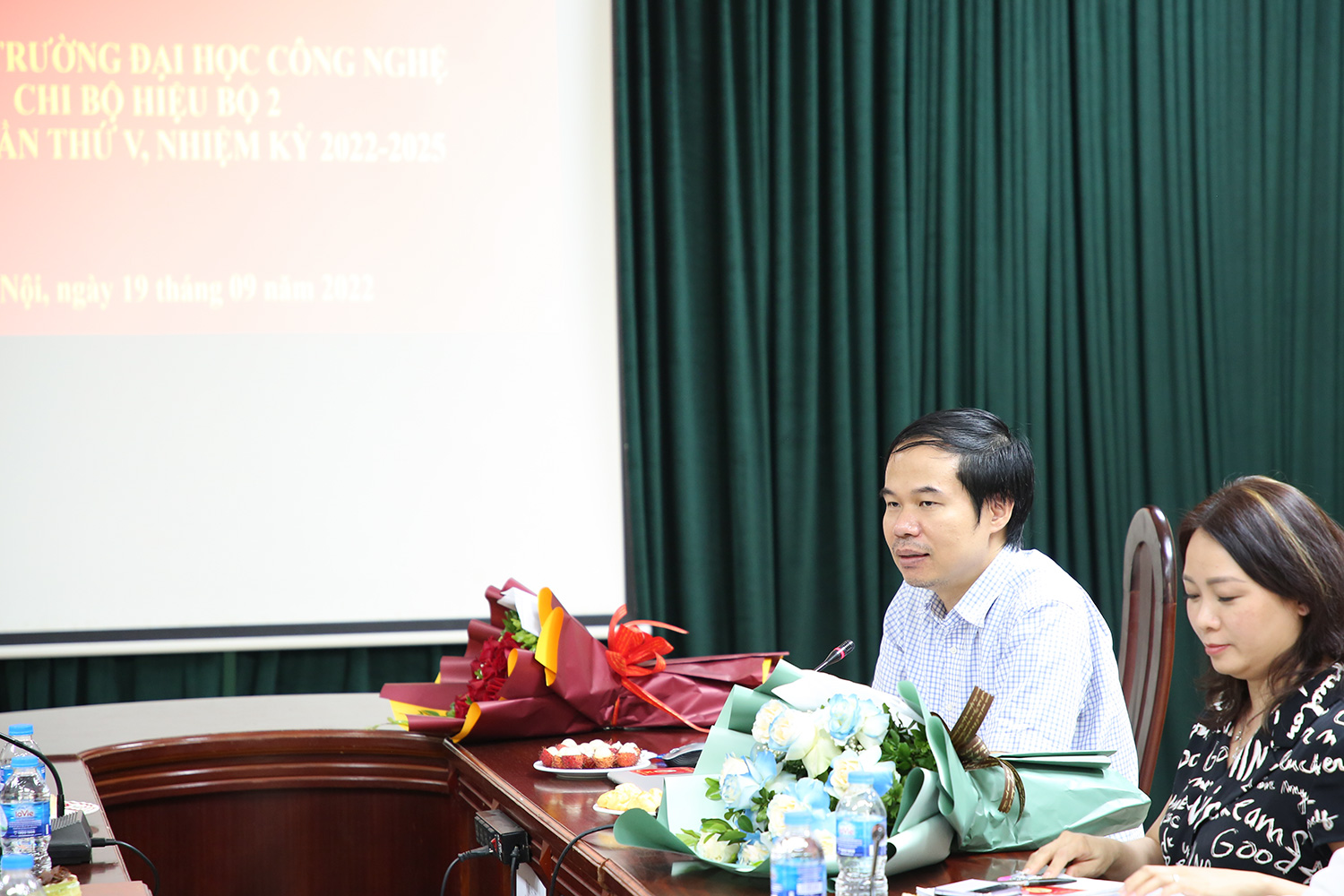 Đến dự và chỉ đạo Đại hội có Đồng chí Nguyễn Việt Hà – Bí thư Đảng ủy, Hiệu trưởng Trường Đại học Công nghệ – ĐHQGHN cùng sự có mặt đông đủ của các đảng viên sinh hoạt tại Chi bộ Hiệu bộ 2.