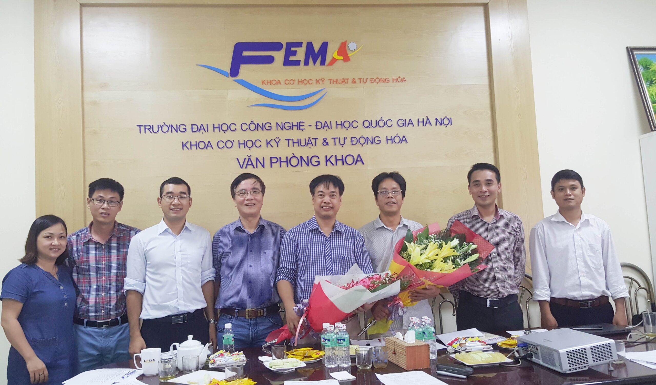 PGS.TS. Chử Đức Trình – Đảng ủy viên, Phó Hiệu trưởng Nhà trường (thứ hai ,bên phải ảnh) chúc mừng Đại hội chi bộ Cơ học kỹ thuật và Tự động hóa nhiệm kỳ 2017-2020 diễn ra vào ngày 12/09/2017. PGS.TS. Phạm Mạnh Thắng tái đắc cử chức vụ Bí thư và PGS.TS. Đặng Thế Ba tái đắc cử chức vụ Phó Bí thư chi bộ Khoa Cơ học kỹ thuật và Tự động hóa nhiệm kỳ 2017-2020