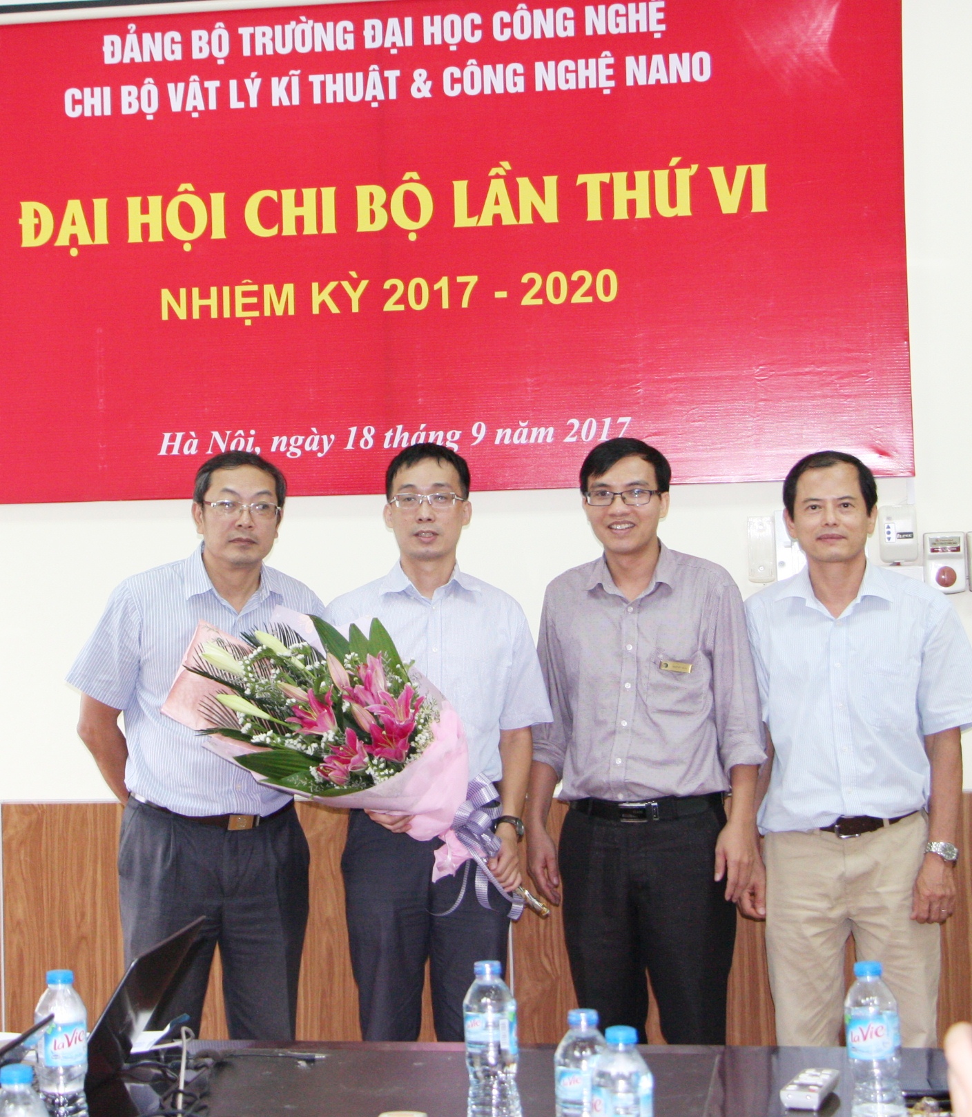 ThS. Phạm Duy Hưng (đứng thứ hai, bên phải ảnh) tới dự và chúc mừng PGS.TS. Phạm Đức Thắng tái đắc cử chức vụ Bí thư, PGS.TS. Nguyễn Phương Hoài Nam tái đắc cử chức vụ Phó Bí thư và PGS.TS. Hoàng Nam Nhật giữ chức Chi ủy viên chi bộ Vật lý kỹ thuật và Công nghệ nano nhiệm kỳ 2017-2020