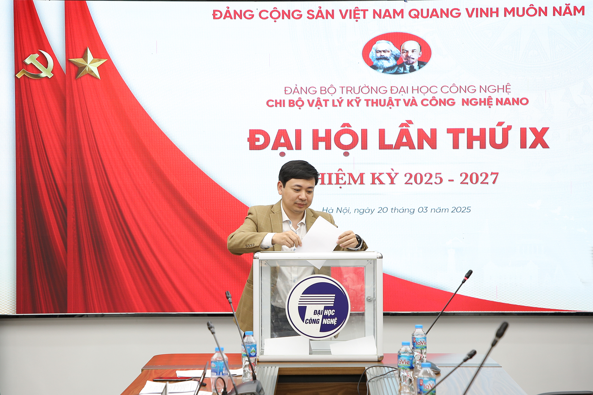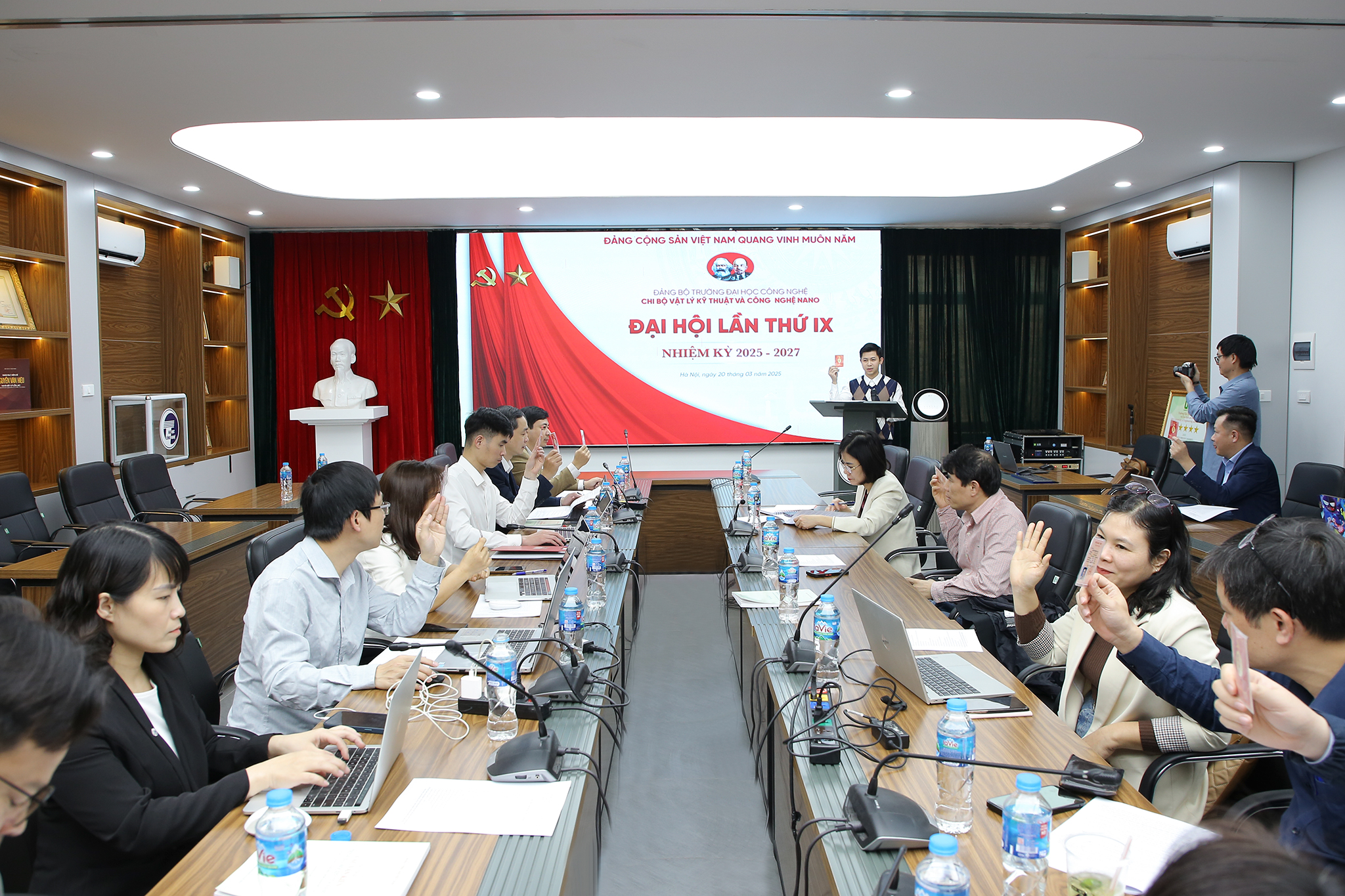 Với tinh thần đoàn kết, trách nhiệm, sáng tạo và phát triển, Đại hội Chi bộ Vật lý kỹ thuật và công nghệ nano nhiệm kỳ 2025-2027 đã thành công tốt đẹp. 100% đại biểu dự Đại hội đã biểu quyết tán thành và thông qua Nghị quyết Đại hội Chi bộ nhiệm kỳ 2025-2027.