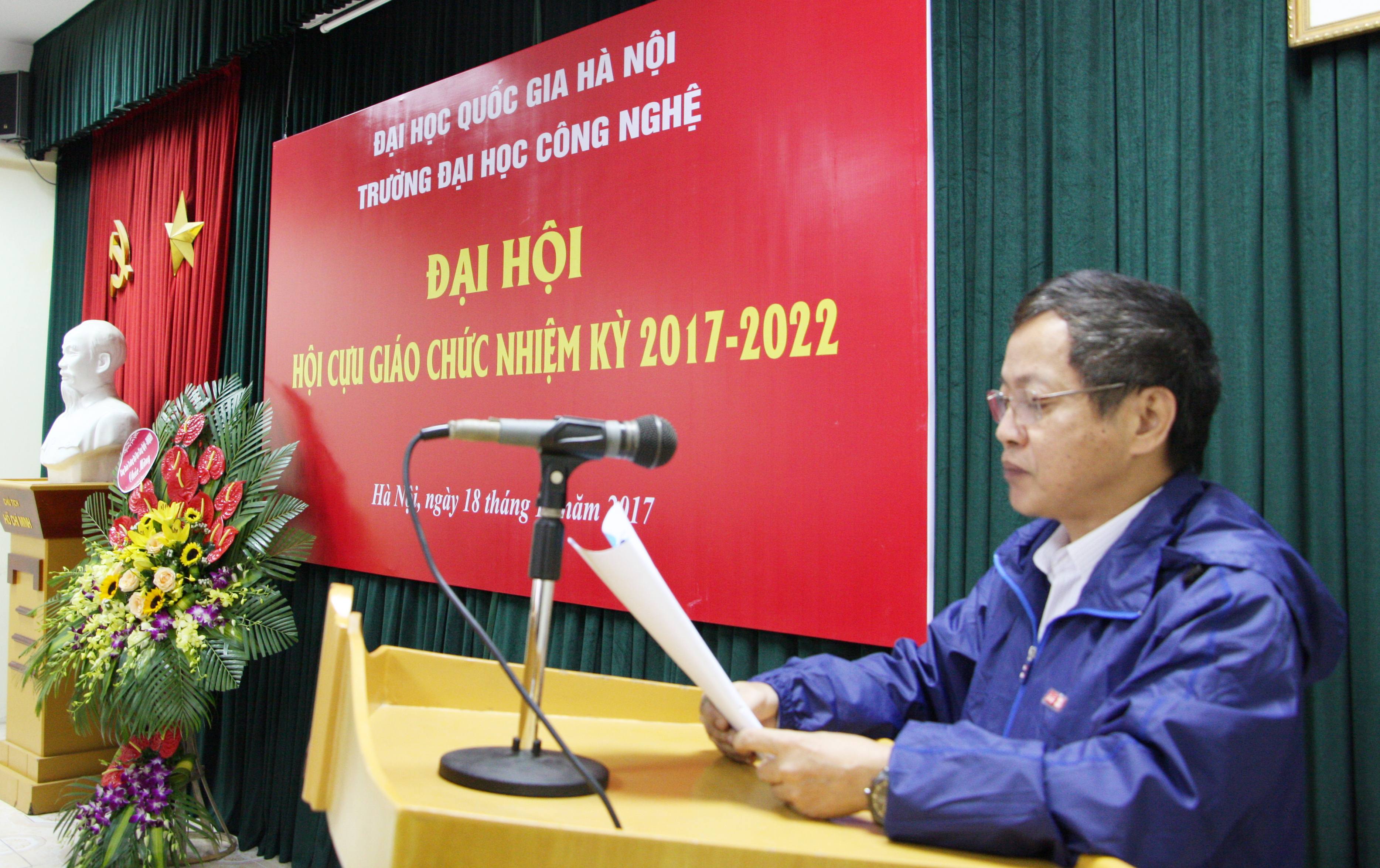 Phát biểu chúc mừng Đại hội, Hiệu trưởng Nguyễn Việt Hà bày tỏ niềm vui khi được gặp mặt đông đủ các thầy/cô qua nhiều thế hệ Trường ĐHCN. Tuy các thầy/cô đã nghỉ hưu nhưng vẫn quan tâm, hỗ trợ và tận tình dẫn dắt các thế hệ sau này. Trong giai đoạn vừa qua, Nhà trường đã có những bước phát triển, năm 2017, số lượng sinh viên nhập học là 1.260 sinh viên. Trường ngày càng nâng cao chất lượng đào tạo và nghiên cứu. Bên cạnh đó, xã hội đã biết đến thương hiệu của Trường với bề dày truyền thống do các thầy/ cô trong Hội Cựu giáo chức tạo dựng và vun đắp từ nhiều năm trước. Nhà trường mong muốn các thầy cô tiếp tục tư vấn, hỗ trợ và giáo dục truyền thống cho các thế hệ sau để góp phần vào sự phát triển của Trường.