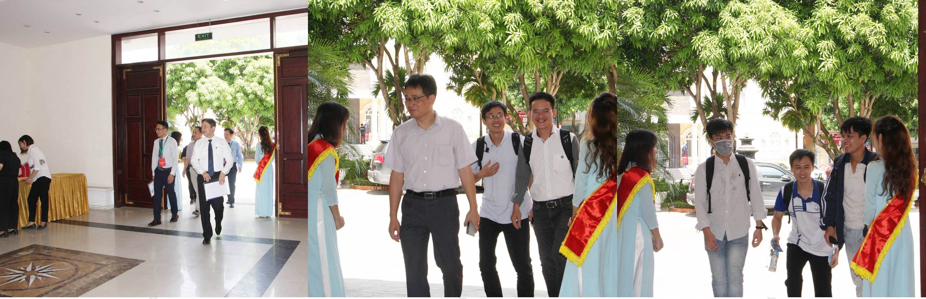 Tình nguyện viên đón tiếp các đại biểu trước khi diễn ra buổi lễ