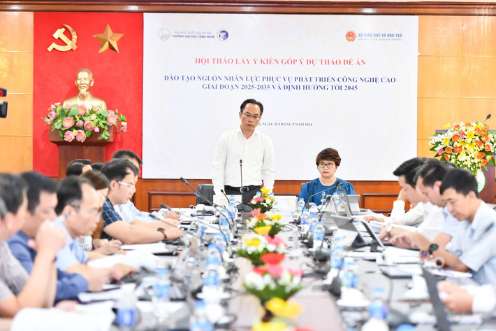 Nhiều ý kiến đóng góp sâu sát, toàn diện và đa chiều được các đại biểu chia sẻ tại Hội thảo lấy ý kiến góp ý dự thảo đề án “Đào tạo nguồn nhân lực chất lượng cao phục vụ phát triển công nghệ cao giai đoạn 2025-2035 và định hướng đến năm 2045” do Bộ Giáo dục và Đào tạo (GD&ĐT) phối hợp cùng Trường ĐH Công nghệ – ĐHQGHN tổ chức ngày 28/9/2024. Thứ trưởng Hoàng Minh Sơn chủ trì hội thảo.