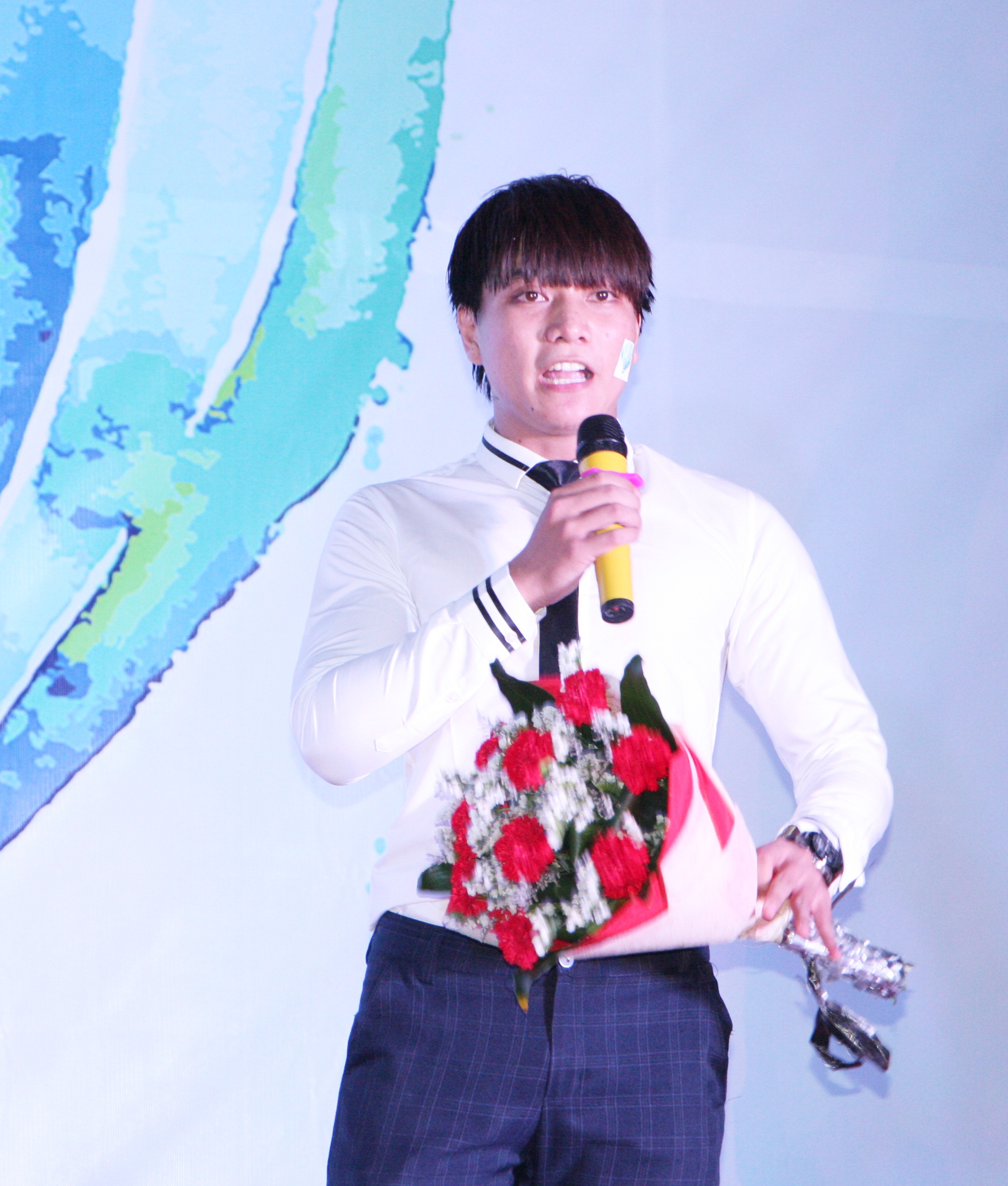 Tân cử nhân Lê Thị Tuyết tặng bó hoa tươi thắm tri ân Phó Hiệu trưởng Chử Đức Trình (ngoài cùng bên trái ảnh)