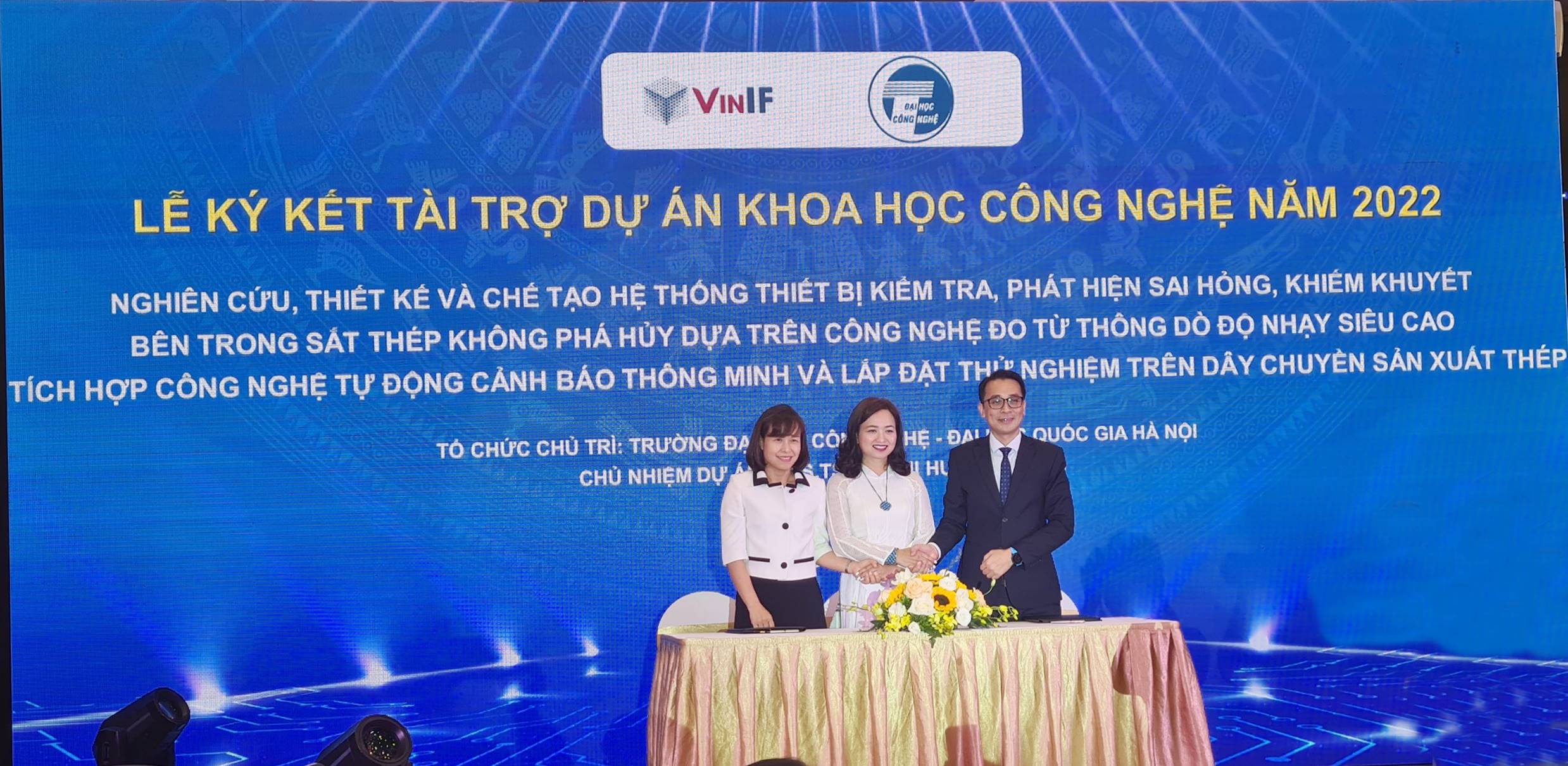 Dự án “Nghiên cứu, thiết kế và chế tạo hệ thống thiết bị kiểm tra, phát hiện sai hỏng, khiếm khuyết bên trong sắt thép không phá hủy dựa trên công nghệ đo từ thông rò độ nhạy siêu cao tích hợp công nghệ tự động cảnh báo thông minh và lắp đặt thử nghiệm trên dây chuyền sản xuất thép” của PGS. TS. Đỗ Thị Hương Giang là Chủ nhiệm đề tài, được Quỹ Đổi mới sáng tạo Vingroup tài trợ