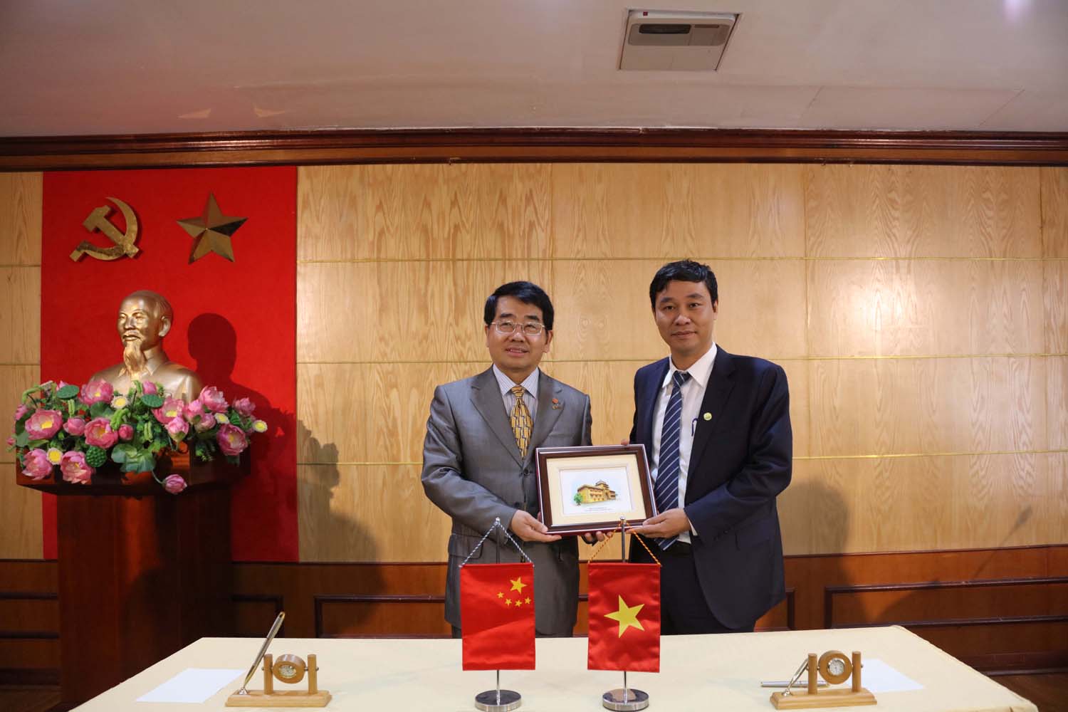 Đại diện lãnh đạo ĐHQGHN và NPU ký kết hợp tác khung tại buổi làm việc