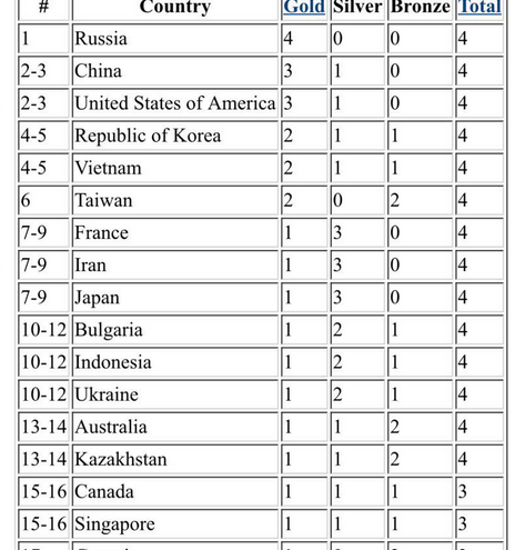 Dựa trên những thành tích này, đoàn học sinh Việt Nam và Hàn Quốc cùng đứng thứ 4-5 trên bảng xếp hạng các nước tham dự, đứng đầu cuộc thi là Nga, Trung Quốc và Mỹ. Trước đó, 04 học sinh tham dự IOI 2019 đã có thời gian tập huấn, chuẩn bị thi tại Trường ĐHCN.
