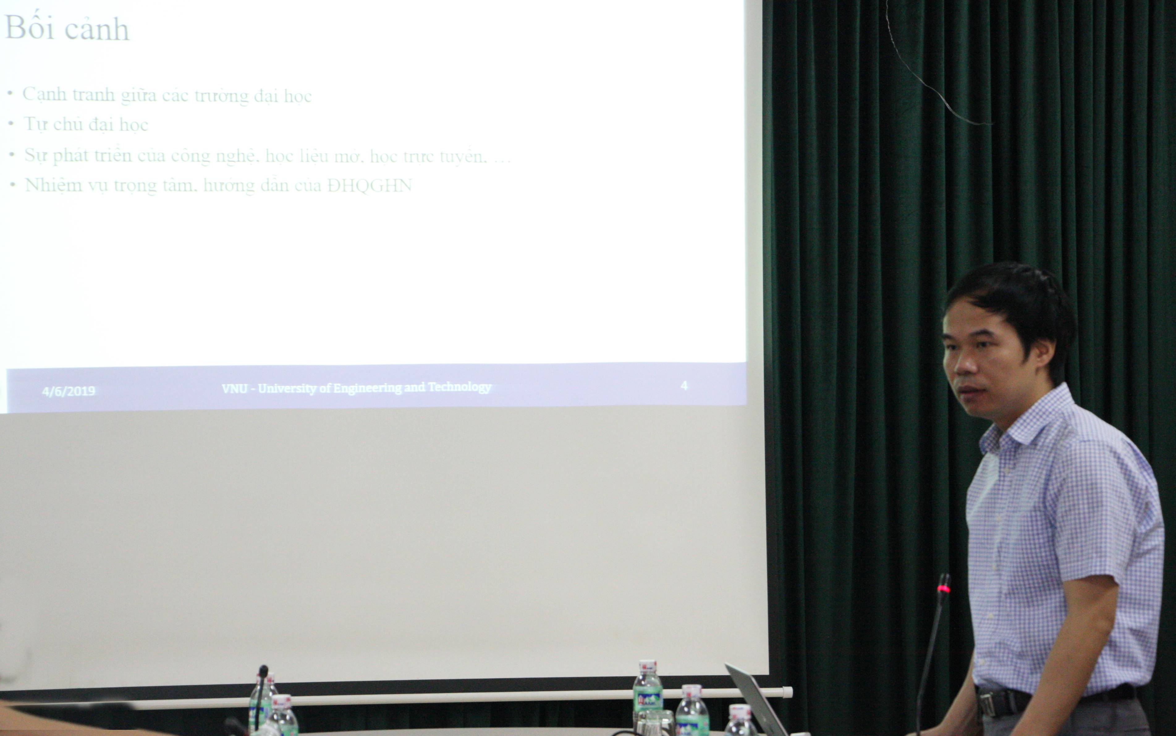 PGS.TS. Nguyễn Tiến Thảo trình bày “Một số nhận định về các hoạt động đổi mới giảng dạy ở ĐHQGHN trong thời gian tới”