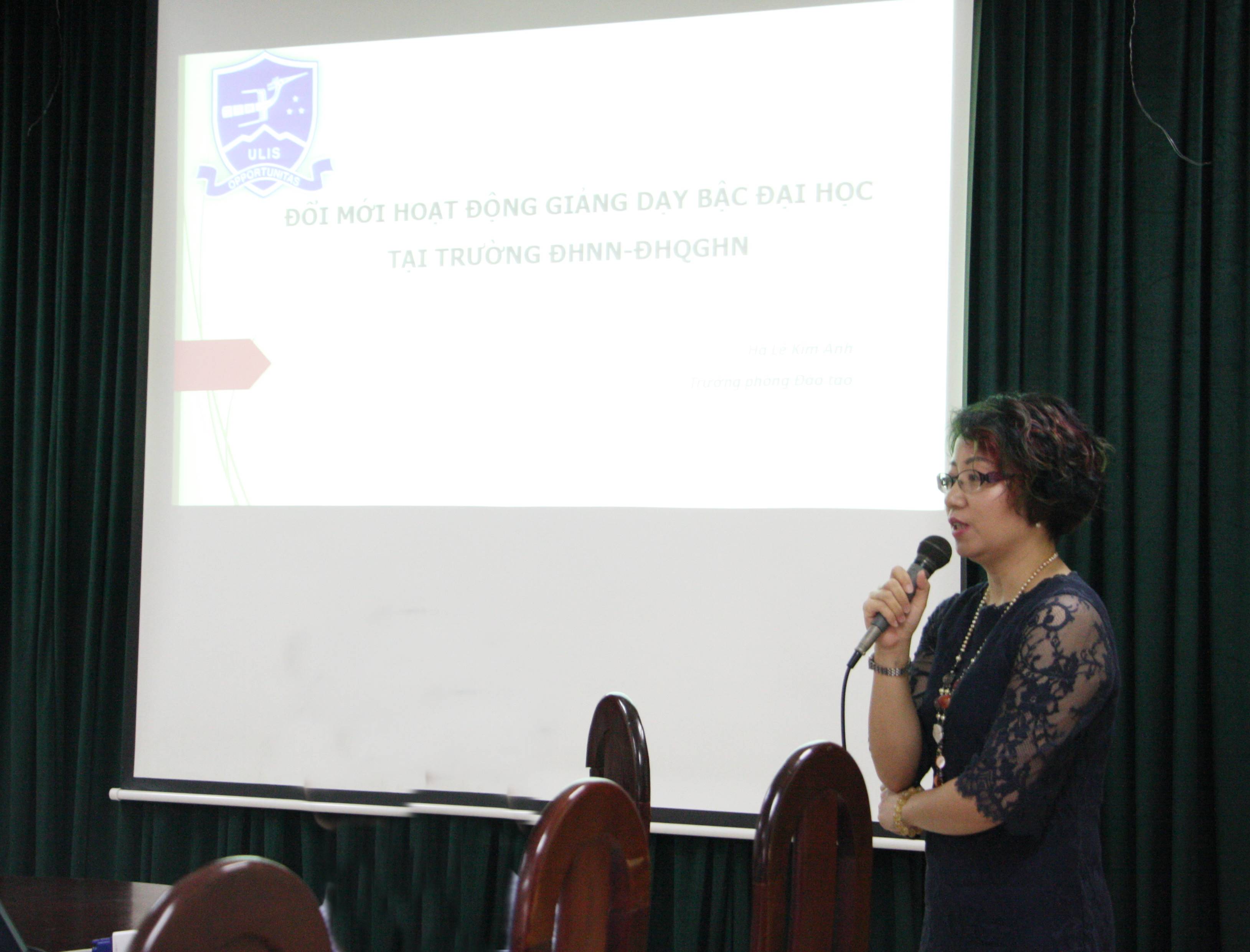 PGS.TS. Hà Lê Kim Anh trình bày “Đổi mới hoạt động giảng dạy bậc đại học tại Trường Đại học Ngoại ngữ”
