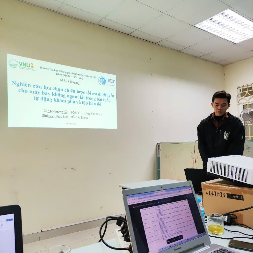– Tên đề tài khóa luận tốt nghiệp: “Nghiên cứu lựa chọn chiến lược tối ưu di chuyẻn cho máy bay không người lái trong bài toán tự động khám phá và lập bản đồ. Điểm số: 9,4 /10.