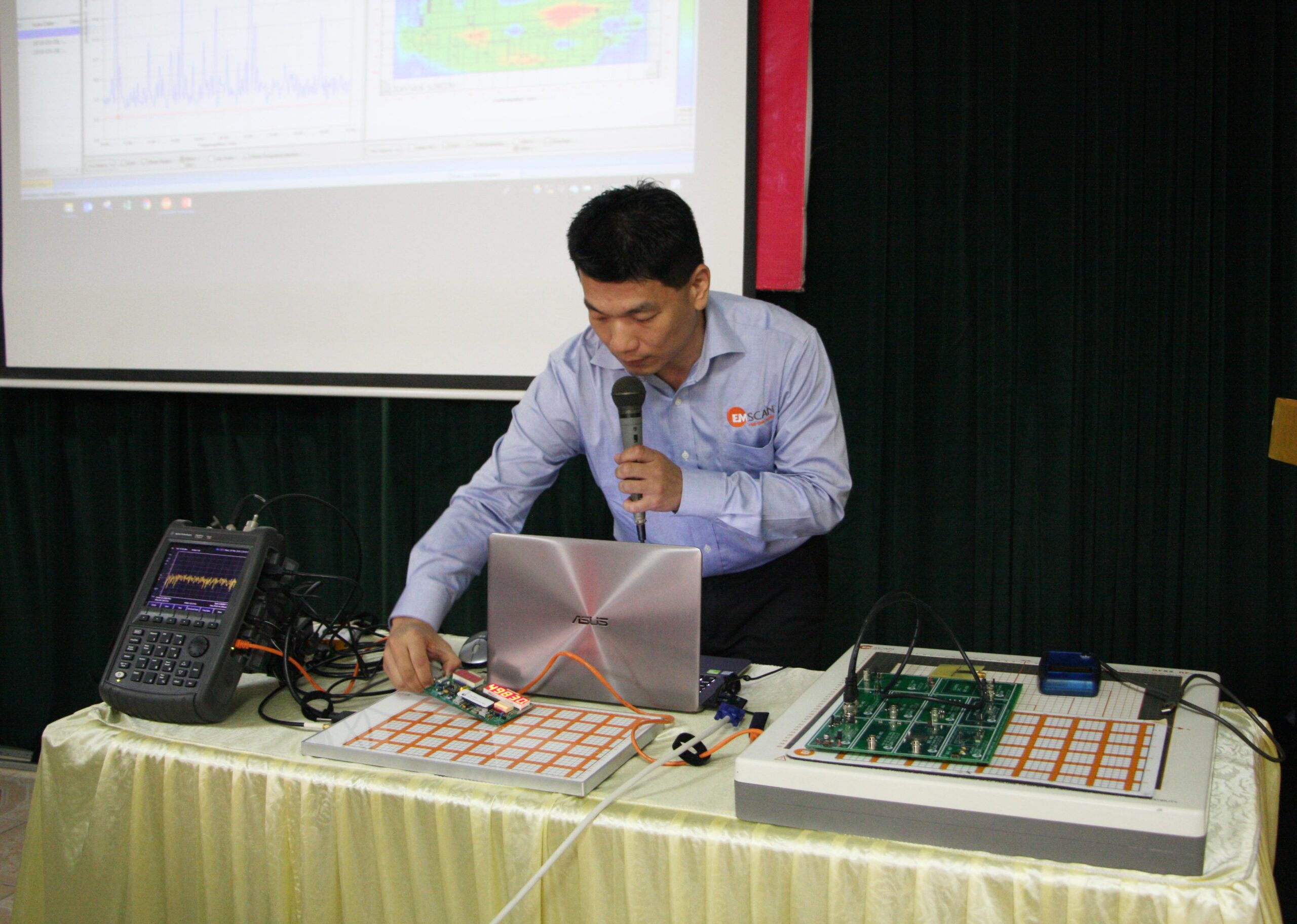 Trong hội thảo lần này, ông Jeremy Yen đã trình bày về phương pháp đo kiểm trên thiết bị và một số lý thuyết về trường điện tử ở trên bo mạch và ăng-ten, đồng thời các giải pháp hỗ trợ cho các kỹ sư. Vấn đề về EMC/EMI rất quan trọng trên mạch giúp chúng ta có thể tìm ra các giải pháp thiết kế giảm nhiễu. Ông Jeremy Yen đã trực tiếp tiến hành kiểm tra EMC/EMI và phân tích các thiết kế antenna theo thời gian thực trong quy trình thiết kế trên máy (phần mềm)….