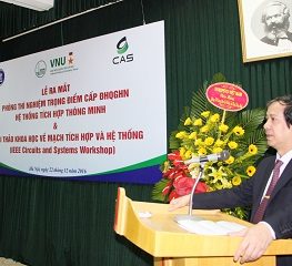The representative from VNU is Prof. Dr. Nguyen Kim Son, President. The representatives from VNU-UET are Prof. Dr. Nguyen Viet Ha, Rector and other members of Board of Rectorate, leaders of Divisions, Faculties and Centers. Other distinguished guests who attend the ceremony are Prof. Amara Amara, Vice-President of IEEE Circuits and Systems, Vice-Rector of ISEP, France; Prof. Yoshijumi Nishio Tokushima, IEEE Circuits and Systems; Mr. Trinh Thanh Lam, Director of Synopsys Vietnam and leader of FPT Group, leader of HBI, HTTP, leader of Dolphin-IC, leader of VNPT Technology.
