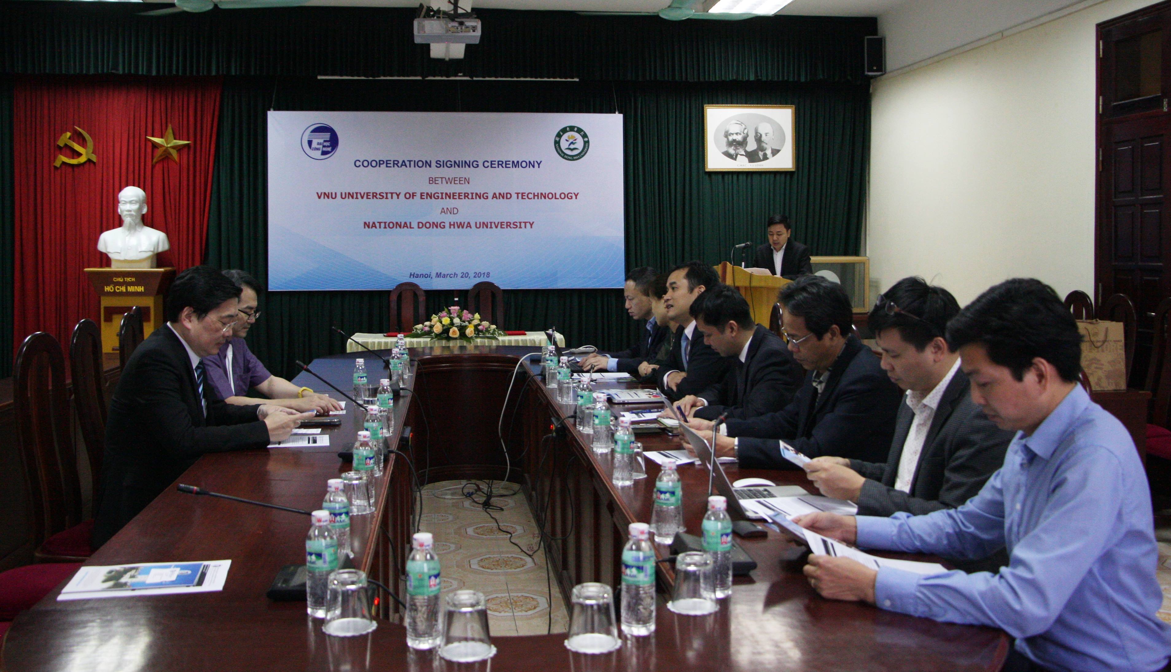 On March 20, the signing ceremony of a cooperation agreement on scientific research and training between UET and National Chunghwa University, Taiwan was held. Chao Han Chieh – Principal with Prof. Ma Yuan Ron – Dean of the Faculty of Physics, Deputy Head of International Relations.