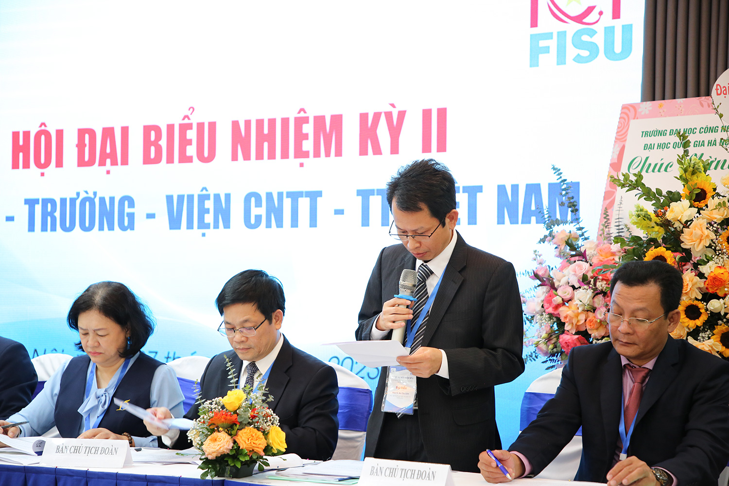 Là một trong những thành viên tích cực tham gia đóng góp chung cho sự phát triển của FISU Việt Nam trong các lĩnh vực đào tạo, nghiên cứu về Khoa học – Công nghệ, Trường Đại học Công nghệ – ĐHQGHN luôn tự hào khi FISU Việt Nam tin tưởng lựa chọn Nhà trường là địa điểm đặt văn phòng Câu lạc bộ và tổ chức các chương trình quan trọng, ý nghĩa. Phát biểu tại Đại hội, GS.TS Chử Đức Trình – Phó Hiệu trưởng Trường Đại học Công nghệ chia sẻ: “Đảng và Nhà nước luôn xác định khoa học và công nghệ có vai trò quan trọng trong quá trình công nghiệp hóa, hiện đại hóa đất nước. Đồng thời đã ban hành nhiều chính sách thu hút các lĩnh vực khoa học và công nghệ khác nhau. Trong đó, CNTT-TT luôn là lĩnh vực được ưu tiên và khuyến khích phát triển dựa trên nhiều thế mạnh mang tính đặc thù của Việt Nam. Dưới góc nhìn từ sự phát triển và vai trò ngày càng lớn mạnh của CNTT-TT, Trường ĐH Công nghệ cho rằng lĩnh vực CNTT đã và đang thể hiện là một lĩnh vực cơ bản trong đào tạo, nghiên cứu. Từ lâu nay CNTT –TT đã trở thành công cụ nền tảng cho các ngành khoa học tự nhiên, công nghệ kỹ thuật y sinh học, kinh tế, quản trị… Thậm chí ngày nay, CNTT-TT thể hiện đã và sẽ là công cụ mang tính nền tảng của các ngành khoa học xã hội. CNTT đóng góp tạo ra cuộc cách mạng khoa học và công nghệ toàn xã hội trên phạm vi toàn cầu trong thời gian qua. Với vị thế mang tính nền tảng, cơ bản, chất lượng và số lượng của đội ngũ CNTT-TT nước ta đã và sẽ đóng vai trò lớn không chỉ quyết định sự thành công của ngành CNTT, mà còn của những lĩnh vực khác. Từ đó, góp phần vào sự thành công trong công cuộc xây dựng phát triển đất nước và phần nào khẳng định vị thế của Việt Nam trong khu vực, trên thế giới. Trong nhiệm kỳ qua, dù ảnh hưởng của dịch Covid-19 nhưng FISU Việt Nam đã có nhiều hoạt động thiết thực và hiệu quả. FISU Việt Nam đã từng bước gắn kết, chia sẻ nguồn lực giữa các đơn vị đào tạo, nghiên cứu về CNTT-TT khắp trên toàn quốc ”.