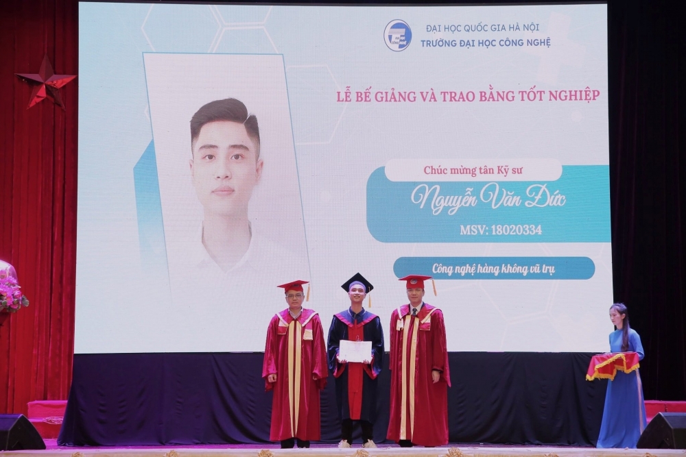 Thấu hiểu sự nhọc nhằn của ba mẹ, Đức càng có thêm nguồn động lực to lớn để nỗ lực hơn trong học tập. Trải qua 4 năm miệt mài trên giảng đường Đại học, năm 2023, Đức xuất sắc tốt nghiệp chuyên ngành Kỹ sư Công nghệ Hàng không vũ trụ, trường Đại học Công nghệ, Đại học Quốc gia Hà Nội với vị trí Á khoa.