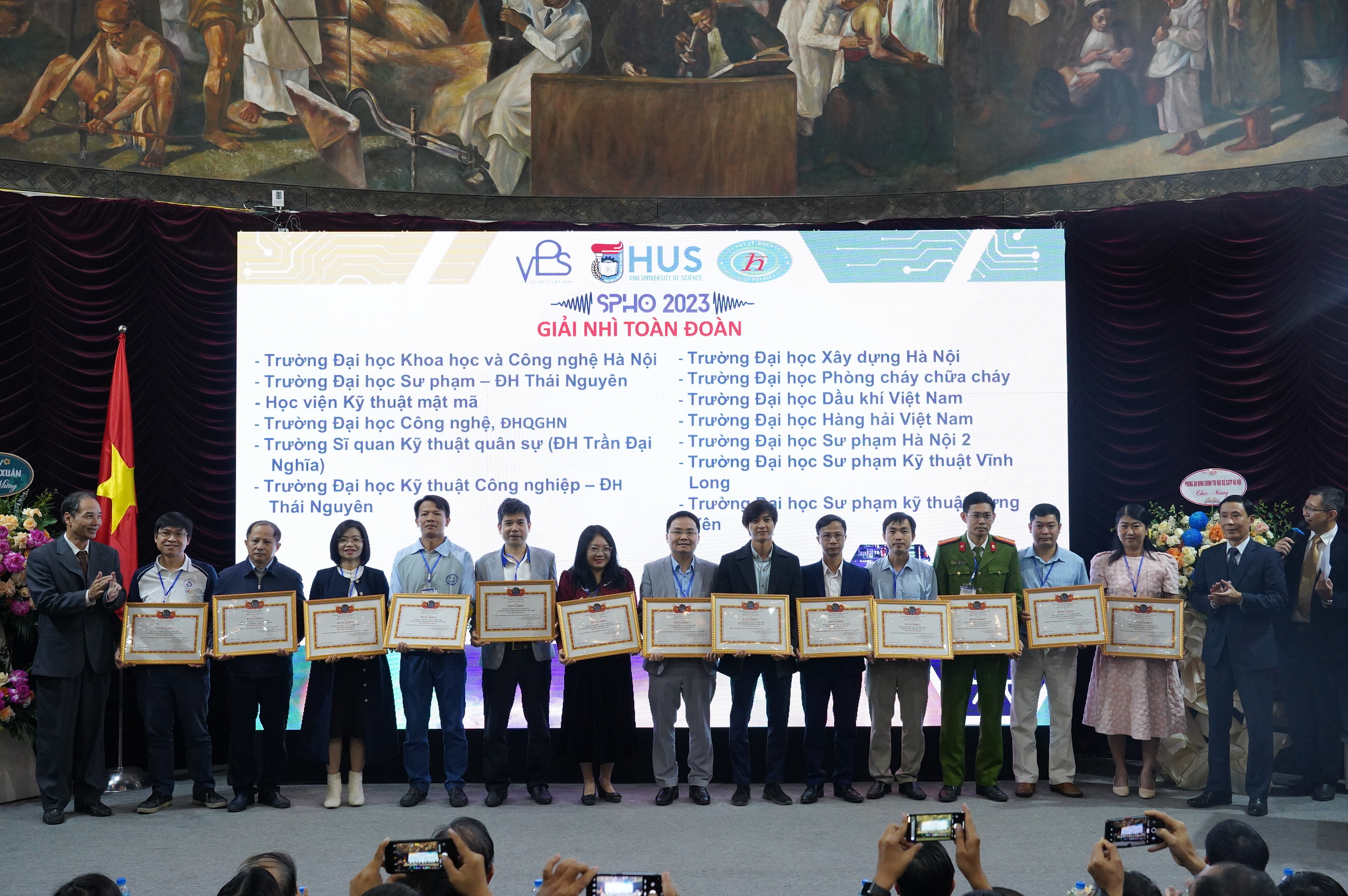 Đại diện đoàn, TS. Nguyễn Đức Cường – Trưởng đoàn (thứ hai, bên trái ảnh) nhận Bằng khen giải Nhì toàn đoàn.