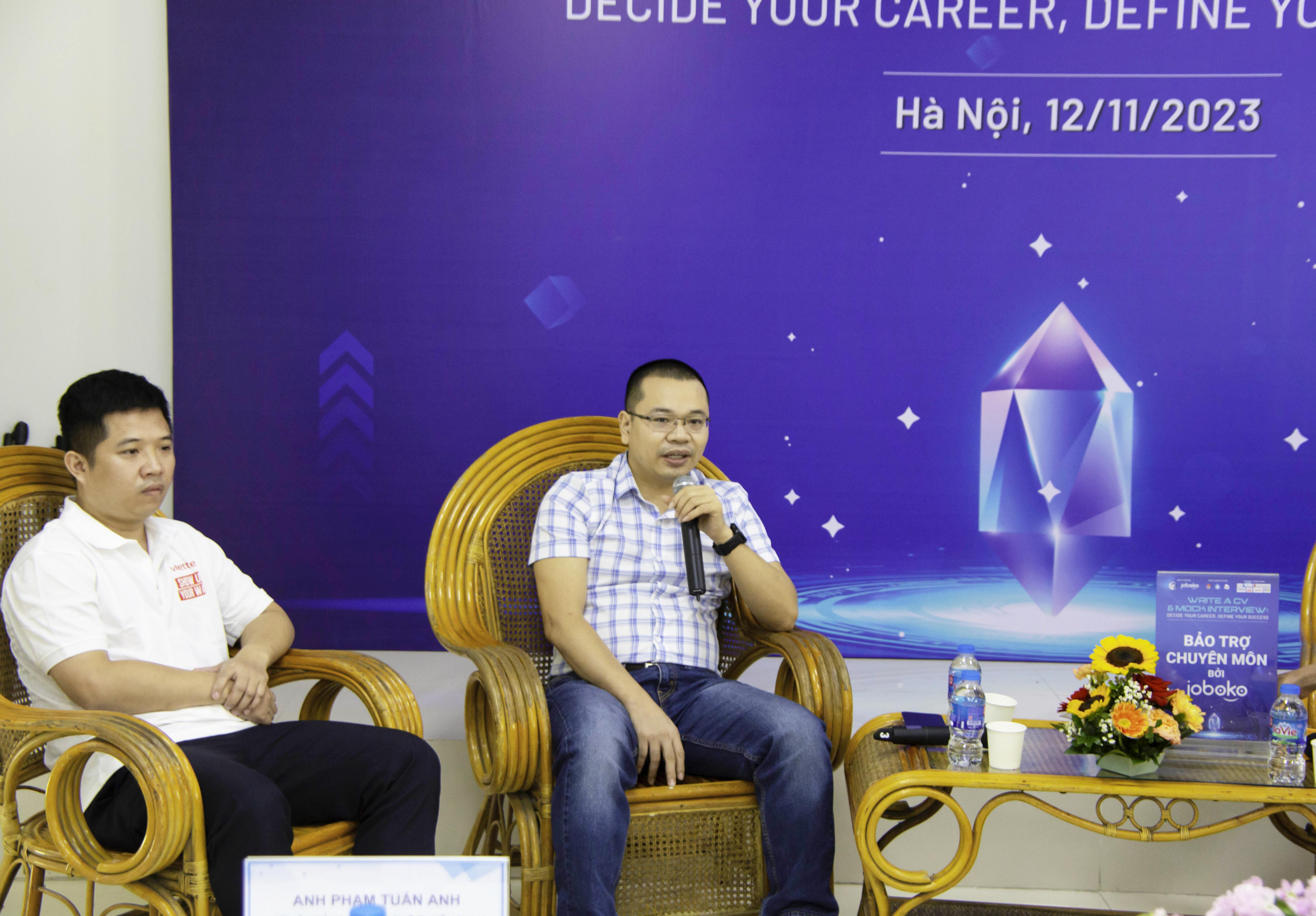 Cựu sinh viên Phạm Tuấn Anh – Giám đốc CTCP JobOKO Toàn Cầu tại sự kiện Ngày hội việc làm của Trường ĐH Công nghệ 2024