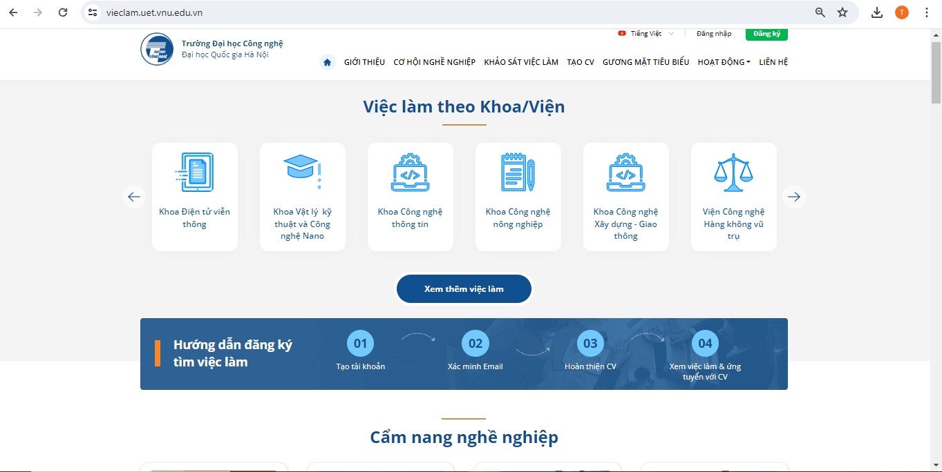 Dựa trên nền tảng công nghệ tuyển dụng (HR Tech) của CTCP JobOKO Toàn Cầu, chúng tôi đã hỗ trợ Nhà trường xây dựng cổng thông tin việc làm: https://vieclam.uet.vnu.edu.vn, kết nối các doanh nghiệp trong lĩnh vực công nghệ kỹ thuật. Từ đó, hỗ trợ sinh viên UET sau khi tốt nghiệp có những cơ hội việc làm đúng chuyên môn, chuyên ngành.