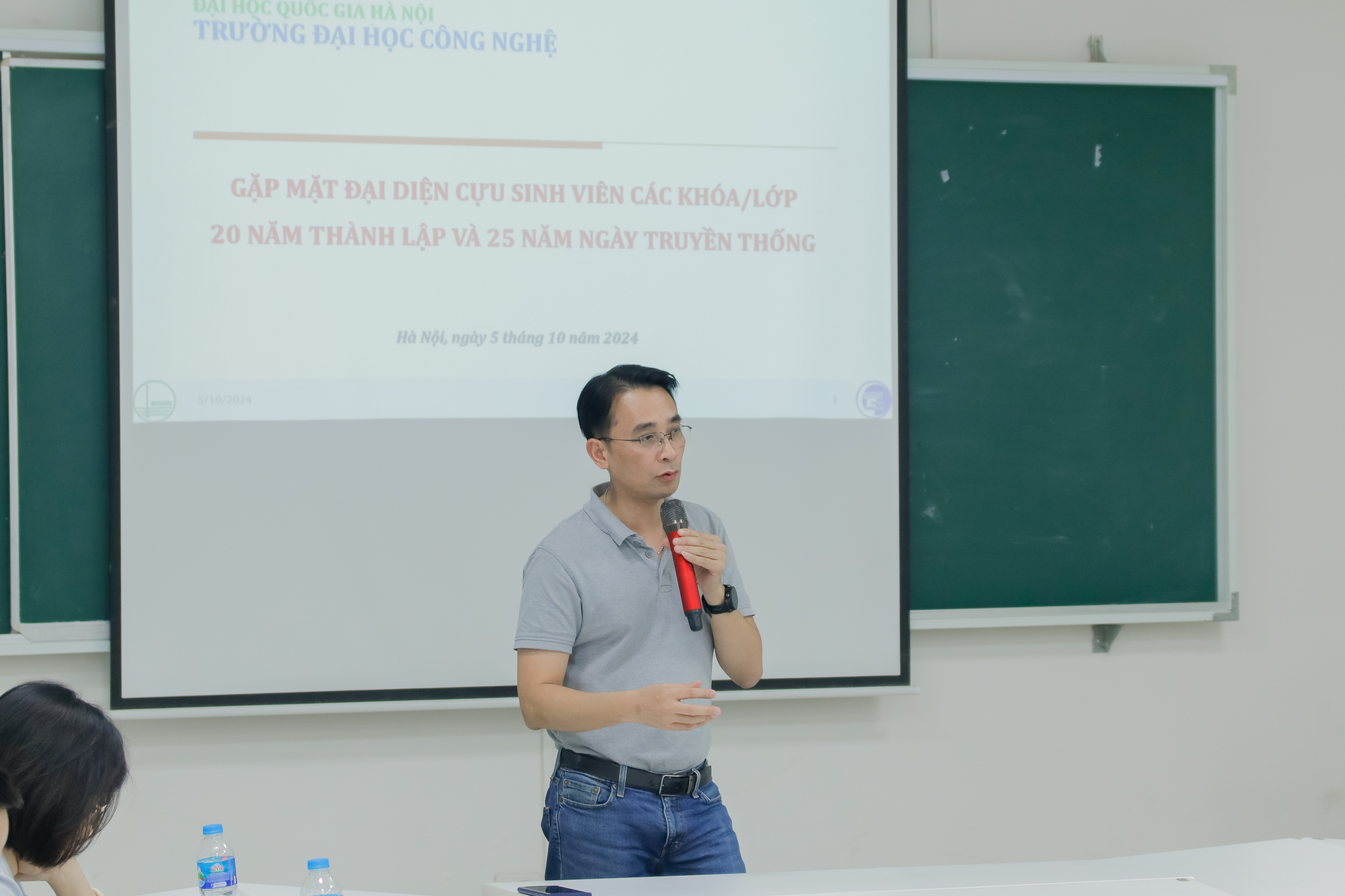 Hướng tới chương trình kỷ niệm 20 năm ngày thành lập Trường Đại học Công nghệ – Đại học Quốc gia Hà Nội (VNU-UET), chiều ngày 05/10/2024, Trường Đại học Công nghệ đã tổ chức chương trình gặp gỡ, kết nối cựu sinh viên năm 2024. Buổi gặp gỡ được tổ chức với mong muốn tiếp tục phát huy sự gắn kết giữa Nhà trường với các thế hệ cựu sinh viên và sinh viên, đồng thời là dịp để giới thiệu quá trình phát triển của Nhà trường trong suốt 20 năm vừa qua.