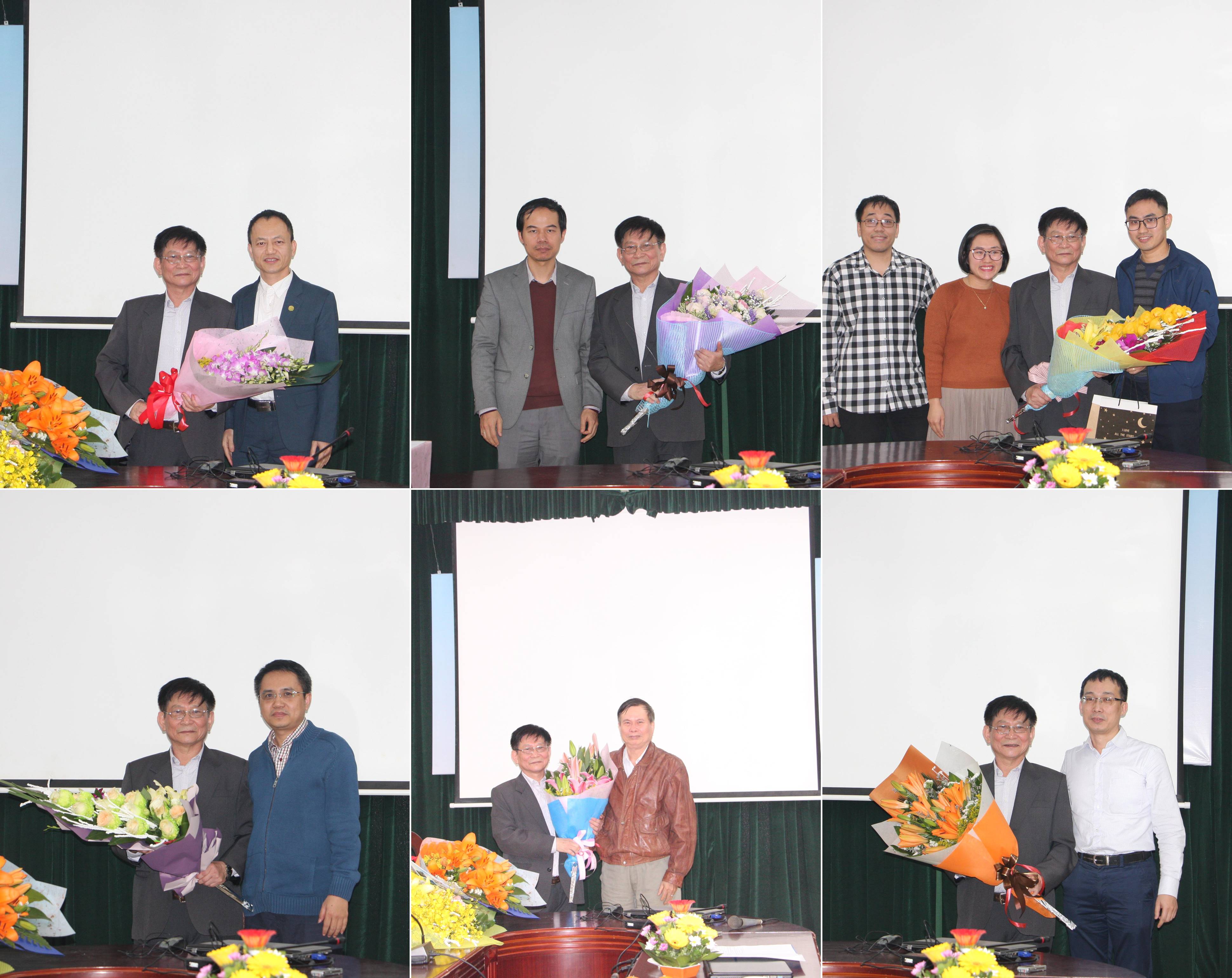 Cán bộ khoa ĐTVT chụp ảnh lưu niệm và trao gửi những bó hoa tươi thắm đến GS.TS. NGƯT Bạch Gia Dương