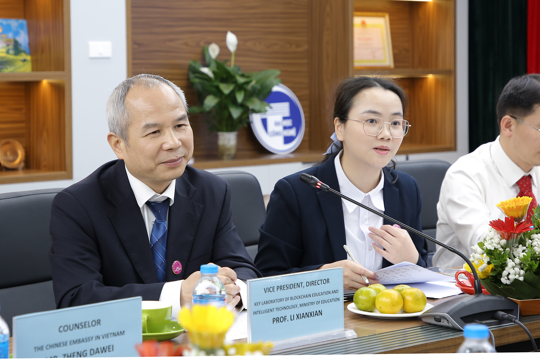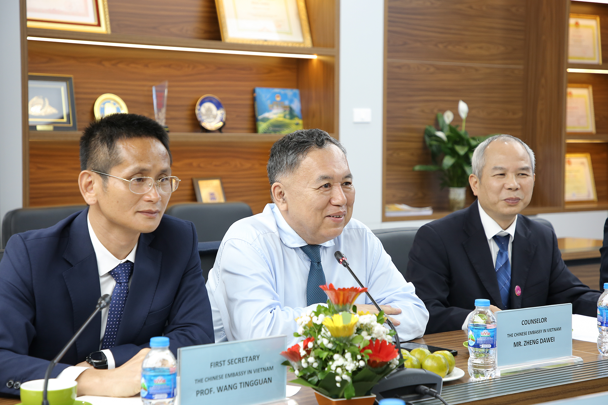 Bày tỏ niềm vui trước những kết quả tích cực trong hợp tác giữa hai trường, ông Zheng Dawei – Tham tán Đại sứ quán Trung Quốc tại Việt Nam đã chia sẻ một số kỷ niệm đáng nhớ trong thời gian từng công tác giảng dạy tại các trường đại học Trung Quốc. Ông đồng thời khẳng định tầm quan trọng của mối quan hệ hợp tác hữu nghị Việt Nam – Trung Quốc, và nhấn mạnh sẽ tiếp tục đồng hành, hỗ trợ để mối quan hệ giữa Trường ĐH Công nghệ và Trường ĐH Sư phạm Quảng Tây phát triển ngày càng thực chất, hiệu quả. Ông cũng bày tỏ mong muốn góp phần thúc đẩy hợp tác giáo dục giữa hai nước, gìn giữ và phát huy hơn nữa truyền thống hữu nghị tốt đẹp giữa Việt Nam và Trung Quốc.