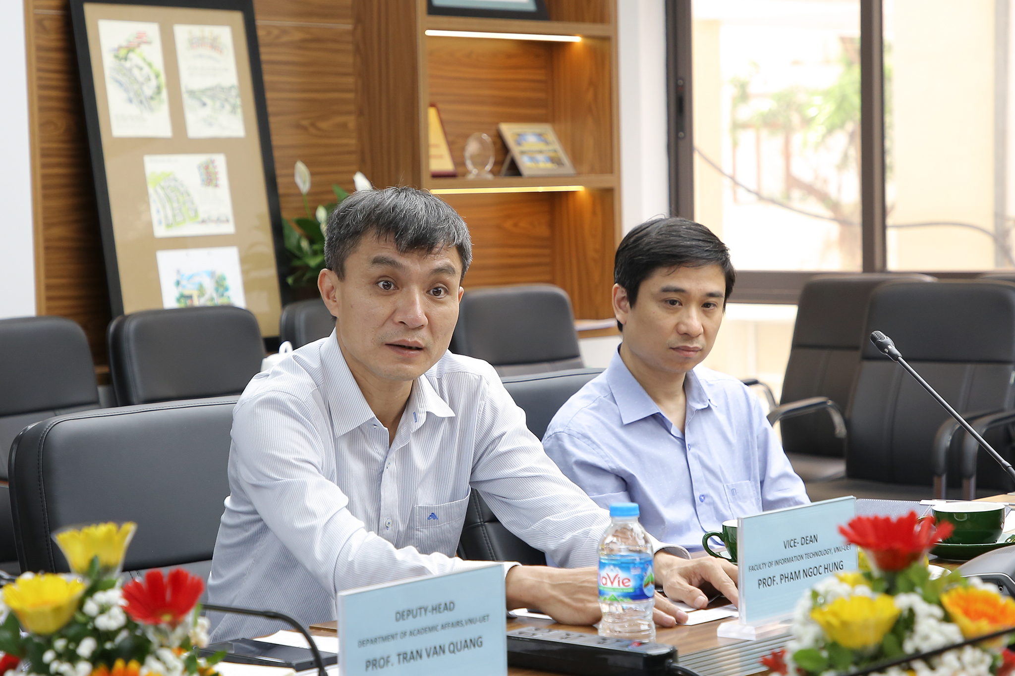 GS.TS Chử Đức Trình cũng chia sẻ, Trường ĐH Công nghệ hiện đang ưu tiên đầu tư và phát triển những ngành mũi nhọn, vừa là thế mạnh truyền thống của Trường, vừa có vai trò quan trọng trong chiến lược phát triển đất nước như công nghệ thông tin, điện tử, cơ điện tử, trí tuệ nhân tạo, xây dựng giao thông, thiết kế công nghiệp, công nghệ nông nghiệp và mới đây là lĩnh vực công nghệ bán dẫn. Trong thời gian tới, Hiệu trưởng bày tỏ mong muốn mối quan hệ hợp tác giữa hai nhà trường sẽ tiếp tục phát triển sâu rộng, thực chất và bền vững hơn nữa.