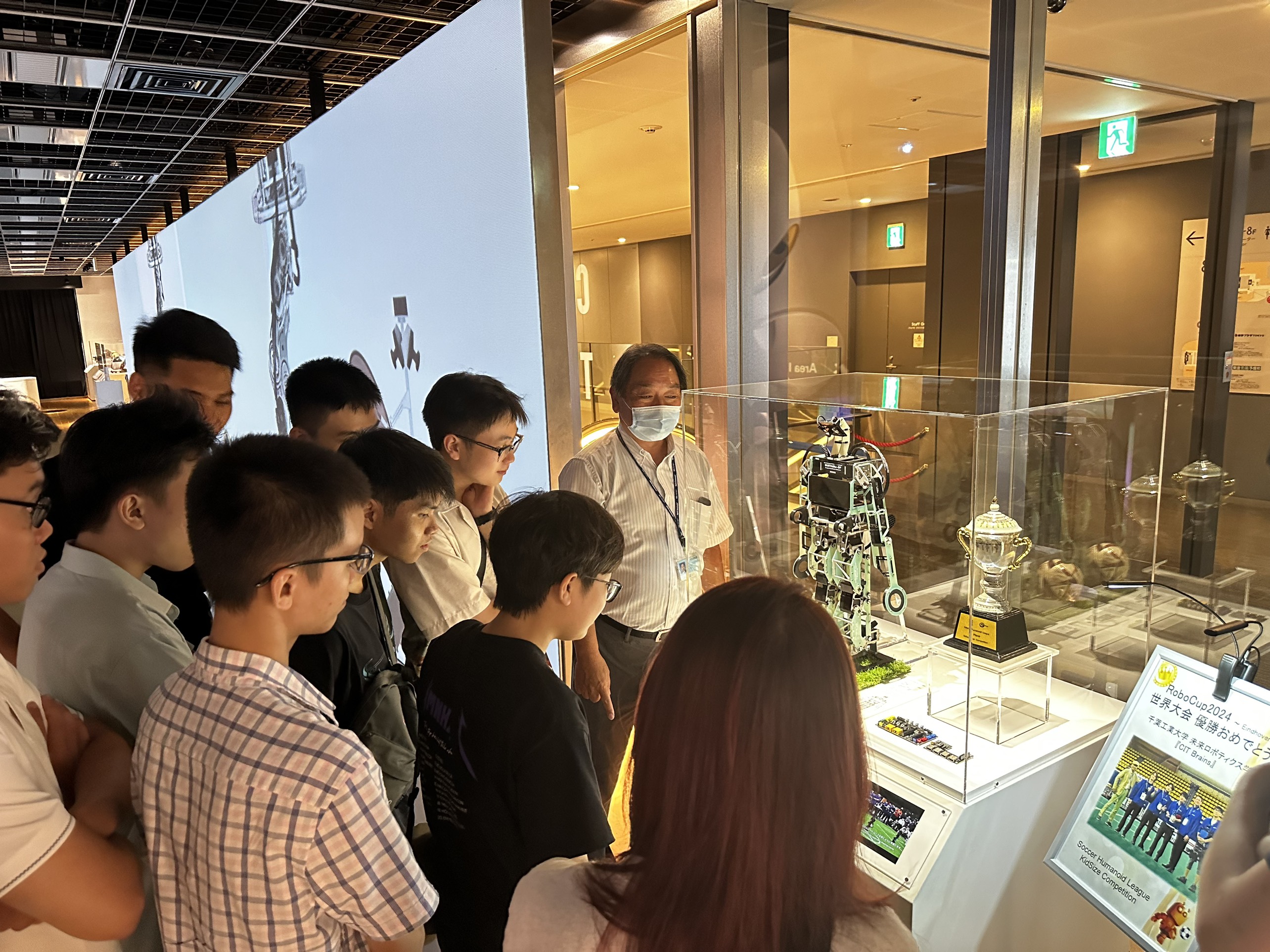 Sinh viên Trương Quang Minh (áo trắng) cùng các bạn tham quan phòng triển lãm công nghệ cao và robot của Trường ĐH Công nghệ Chiba