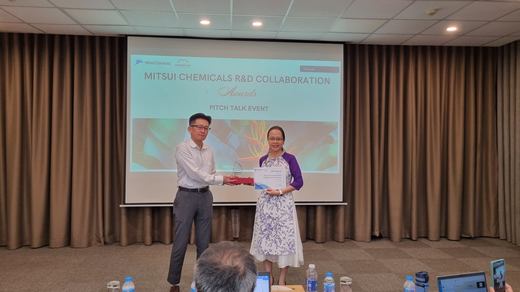 TS. Lê Thị Hiên (bên phải ảnh) nhận giải thưởng Mitsui Chemicals R&D Collaboration Award 2023