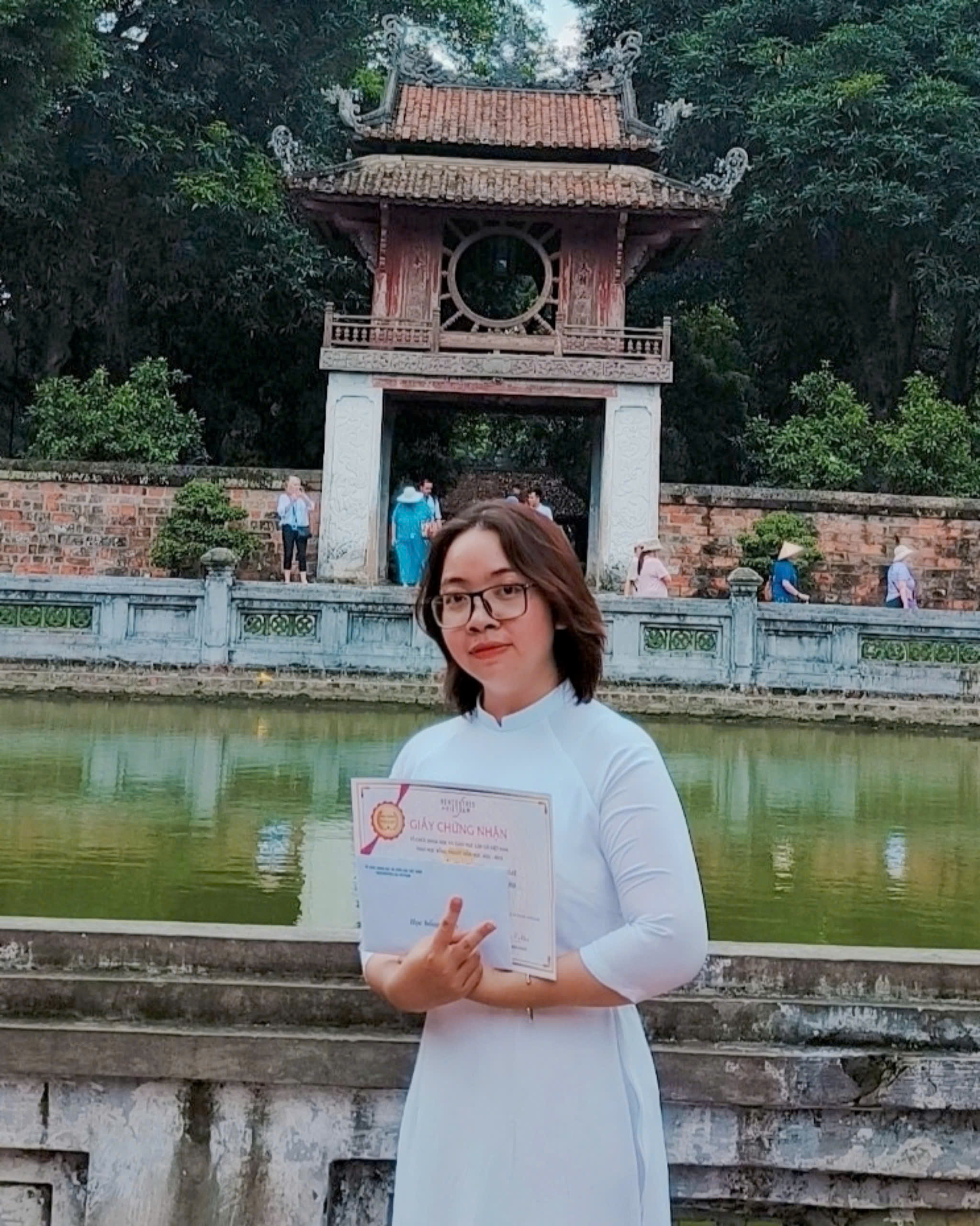 Sinh viên Thu Phương nhận giải thưởng Nữ sinh cùng những người bạn đồng hành
