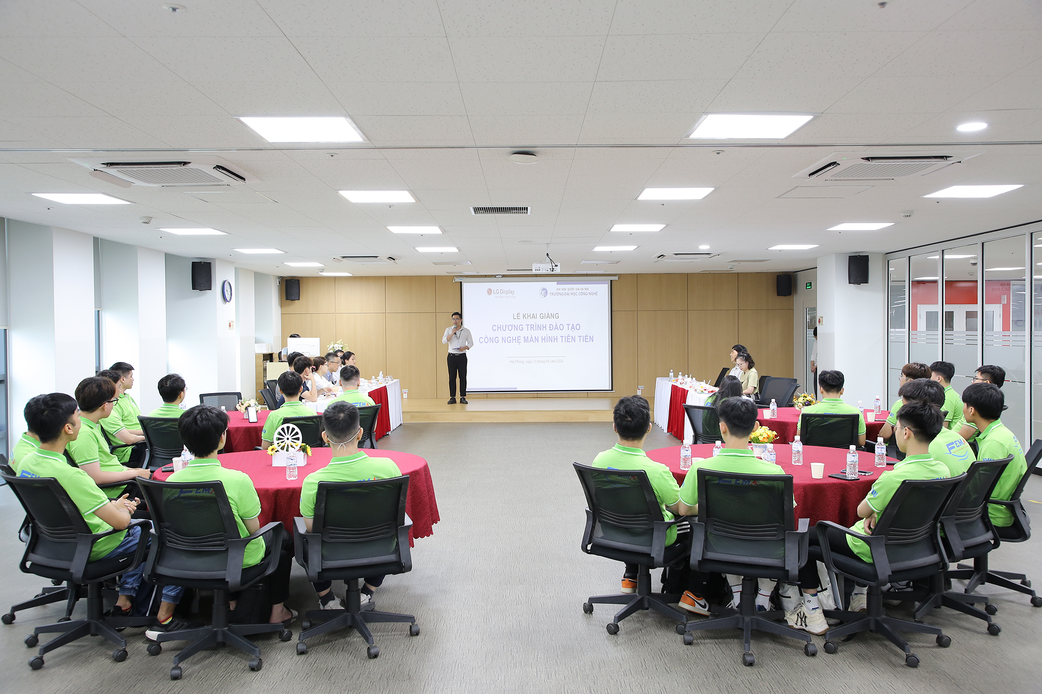 Khóa sinh viên đầu tiên được đào tạo chuyên ngành Công nghệ màn hình tiên tiến tại doanh nghiệp trong khuôn khổ hợp tác giữa Trường Đại học Công nghệ, Đại học Quốc gia Hà Nội (VNU-UET) và Công ty TNHH LG Display Việt Nam Hải Phòng (LGDVH) đã khởi động bằng hai môn học Điều khiển khí nén và Kỹ thuật màn hình cơ sở. Sau 2 tuần được học tập và trải nghiệm thực tế tại LGDVH, sinh viên khoa Cơ học kỹ thuật và tự động hóa đều hào hứng với chuyên ngành này khi bản thân tiếp thu những kiến thức chuyên môn thực tiễn trong lĩnh vực màn hình và kinh nghiệm quý báu trong môi trường doanh nghiệp.