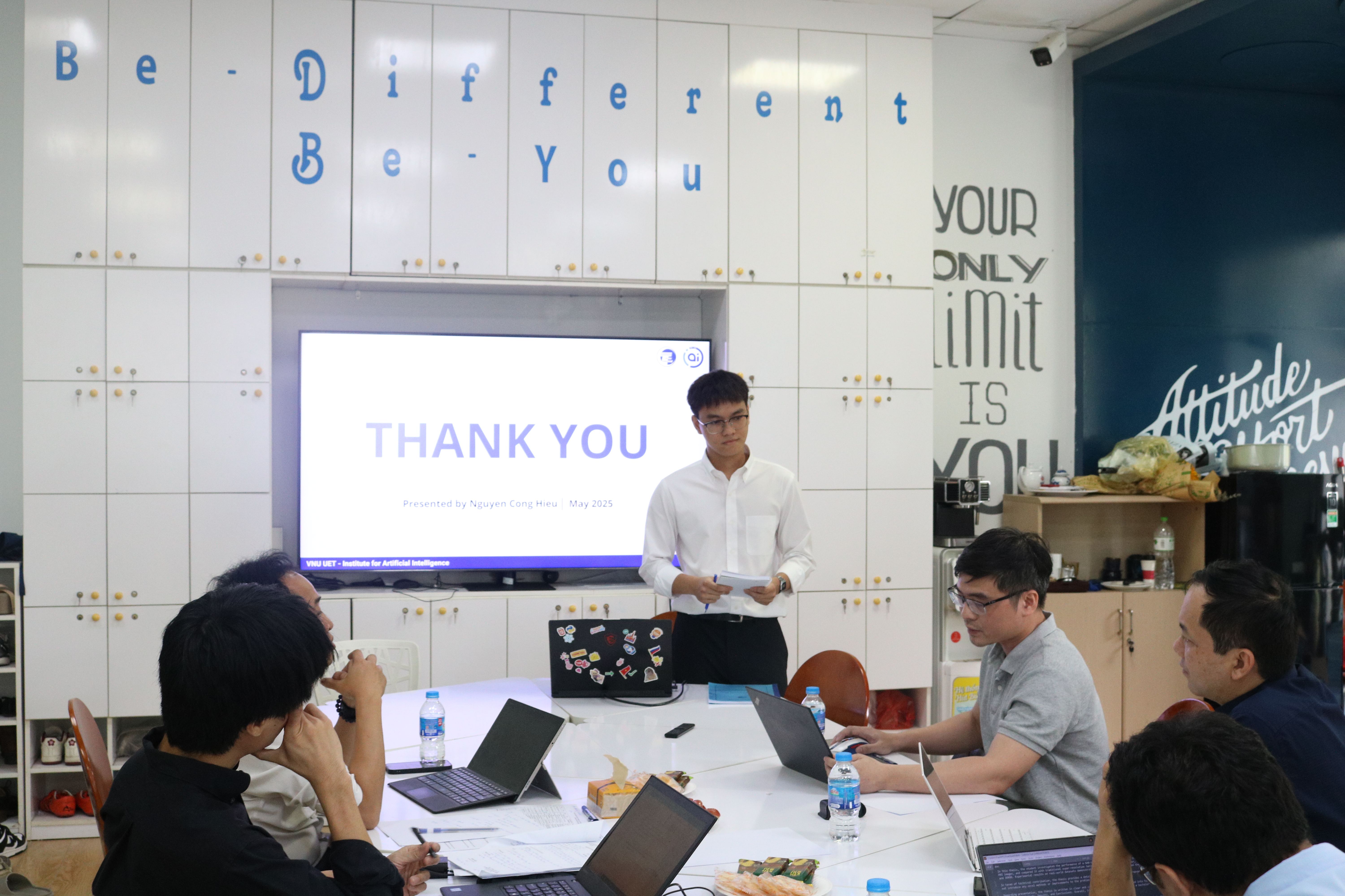 Trong tương lai, em định hướng tiếp tục theo đuổi con đường học thuật và nghiên cứu chuyên sâu. Em mong muốn được theo học bậc cao học tại một quốc gia phát triển mạnh về lĩnh vực AI để có thể học hỏi các kinh nghiệm từ bạn bè quốc tế và ứng dụng các kinh nghiệm, kiến thức đó góp phần phát triển lĩnh vực trí tuệ nhân tạo tại Việt Nam. Để thực hiện được mong muốn này, trước mắt, em vẫn đang tham gia các hoạt động nghiên cứu khoa học tại Viện Trí tuệ nhân tạo để củng cố kiến thức chuyên môn và rèn luyện kỹ năng nghiên cứu. Bên cạnh đó, em sẽ tích cực tìm kiếm cơ hội hợp tác trong các dự án khoa học, cũng như cơ hội du học nhằm chuẩn bị tốt nhất cho những bước tiến tiếp theo trên hành trình học tập và phát triển nghề nghiệp với mục tiêu trở thành chuyên gia trong lĩnh vực trí tuệ nhân tạo.